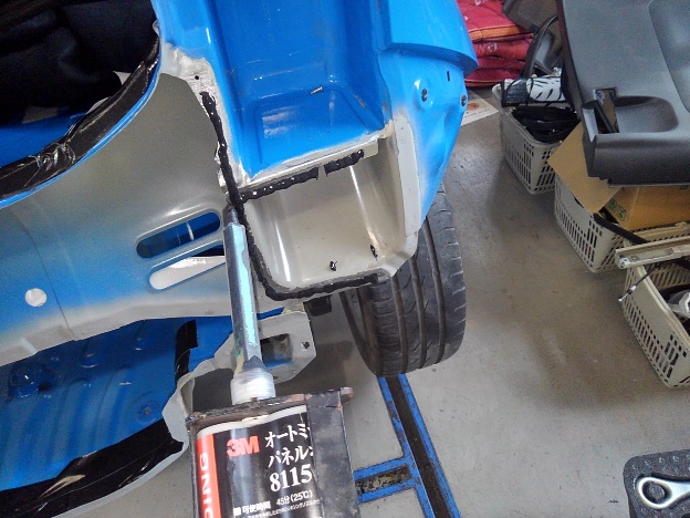 内板色の塗装作業の後、バックパネルの溶接作業を行いました。