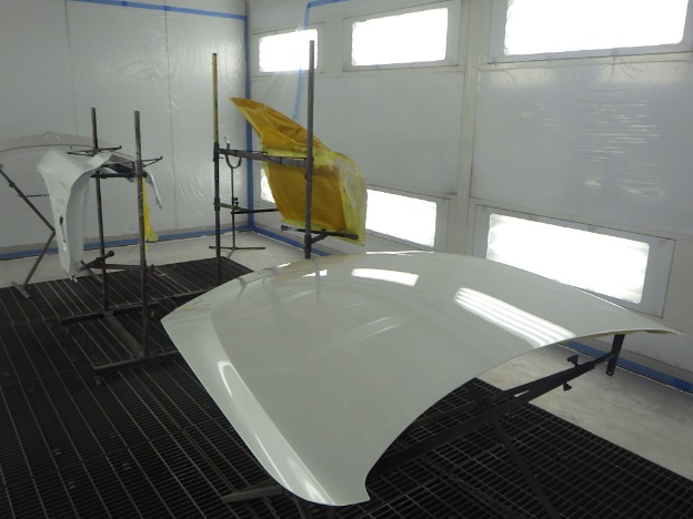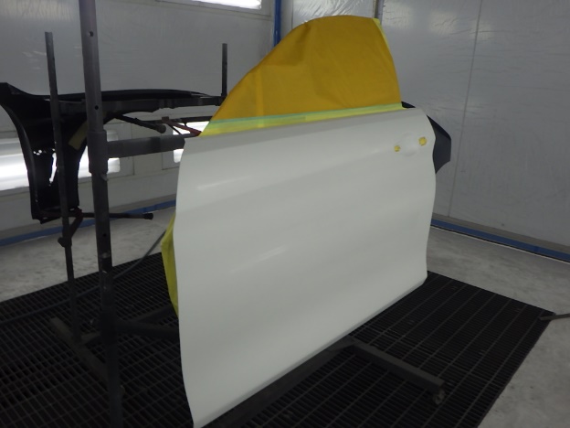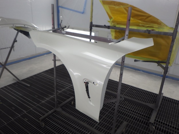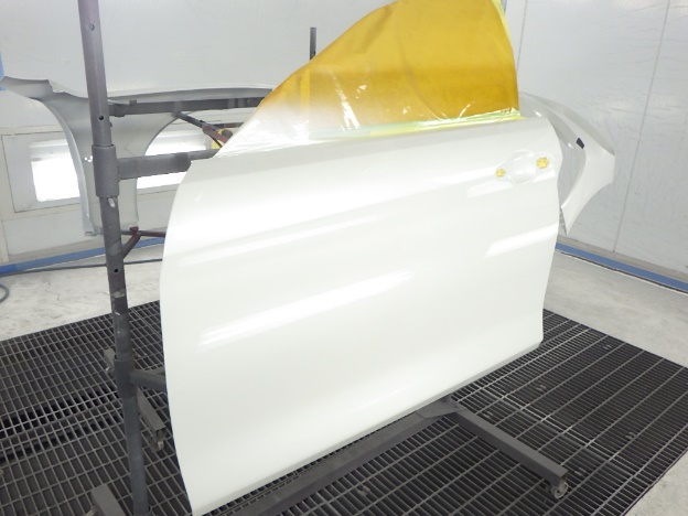ベースコート(白、パール)、トップコート(クリヤー)の順に塗装作業を行いました。