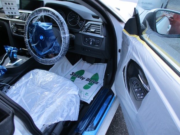 入庫確認作業の後、キズ、汚れ防止の為、ハンドルカバー、シートカバー、