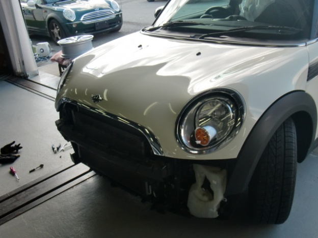 Home » 未分類 » 【鈑金塗装】【事故】兵庫県神戸市、商品車、2010y、MINI、R56、フロントバンパー損傷へこみ修理レポートです!ありがとうございました。