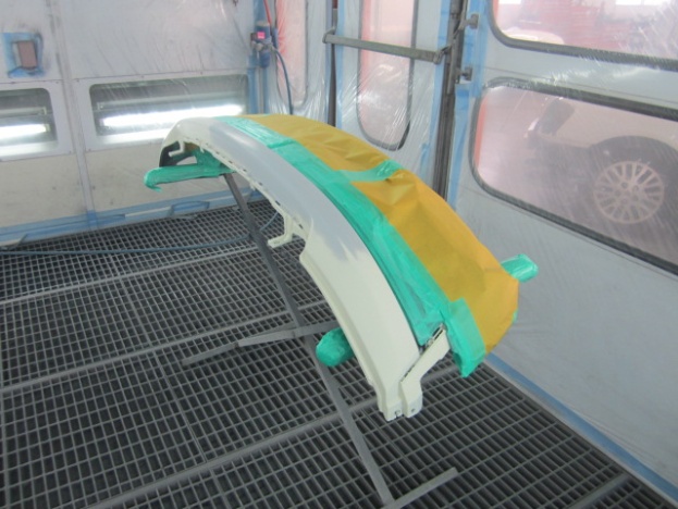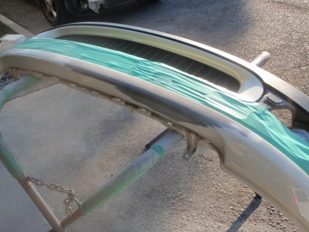 損傷個所のキズの研ぎ込作業を行い、マスキング作業、脱脂作業、エアブローの後、