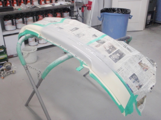 ベースコート(白)、トップコート(クリヤー)の順に塗装作業を行いました。