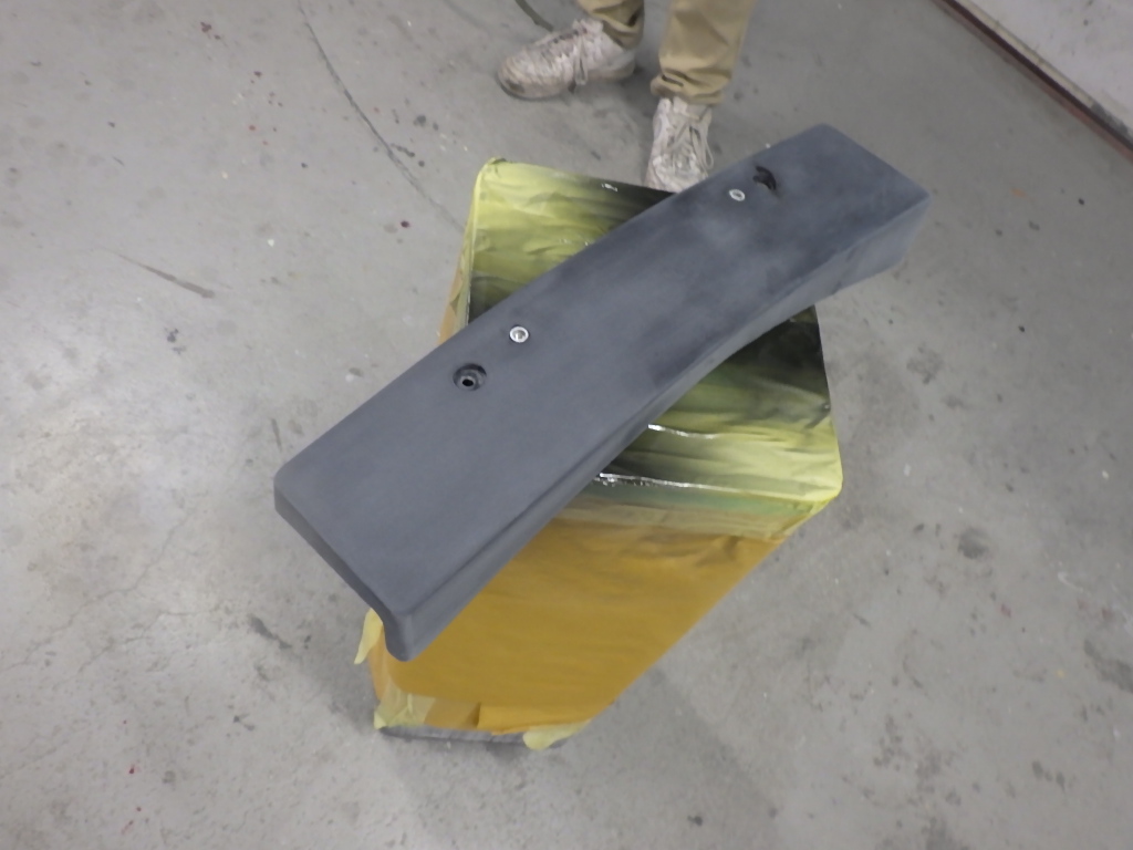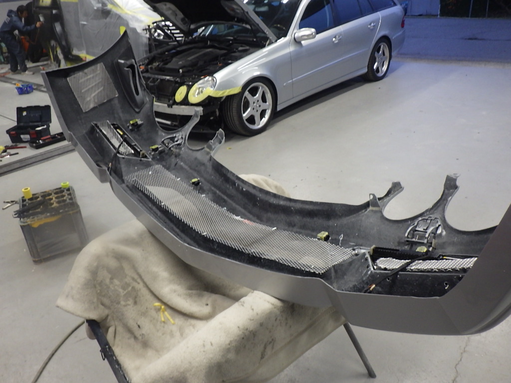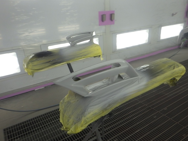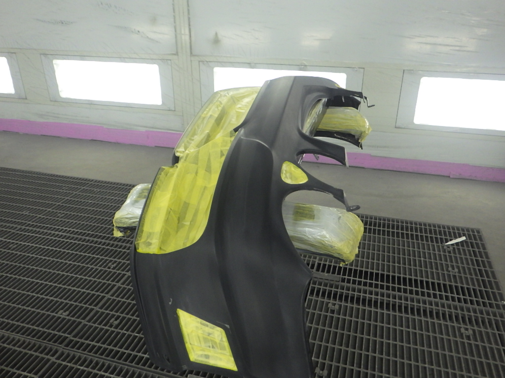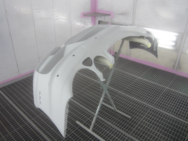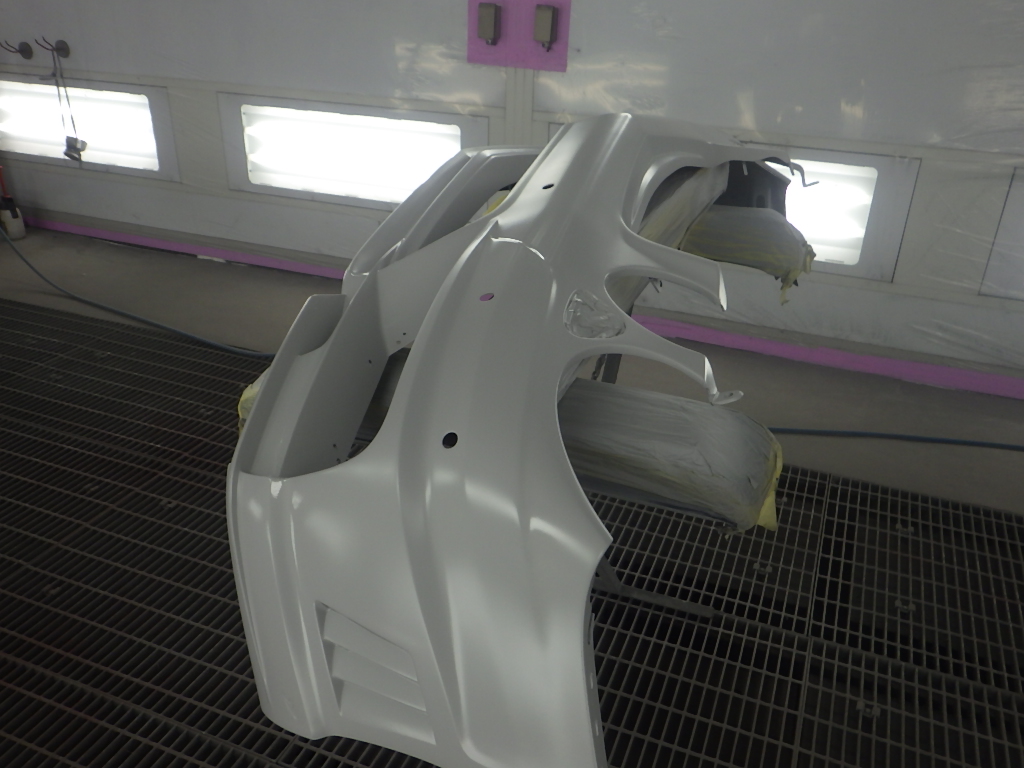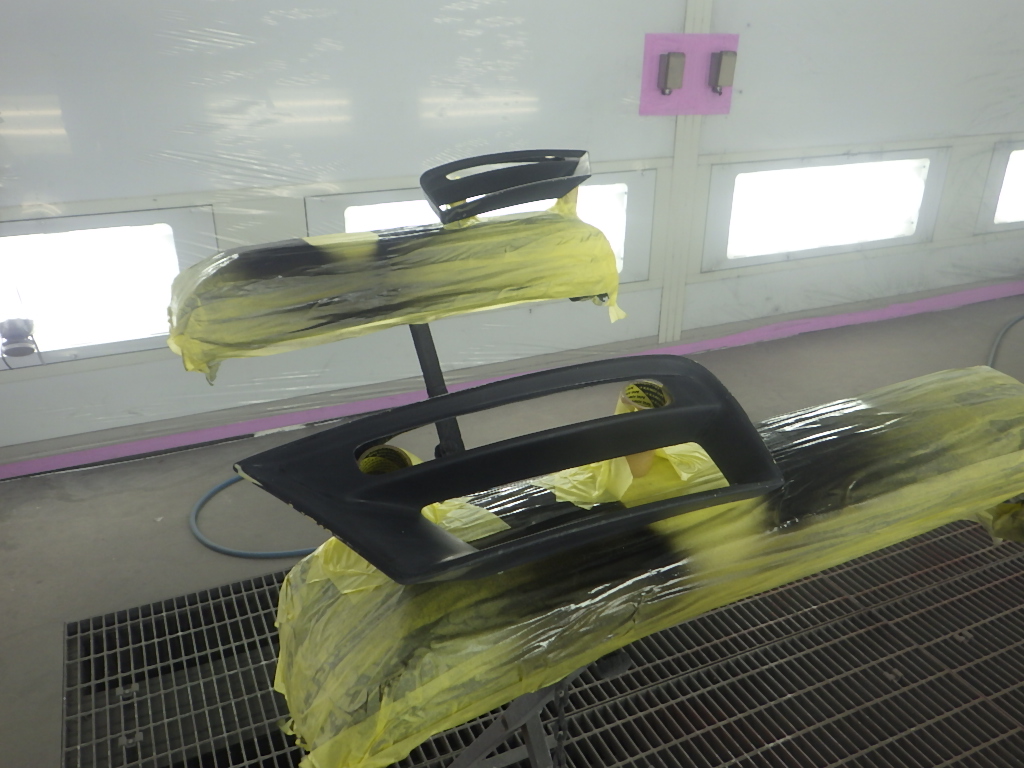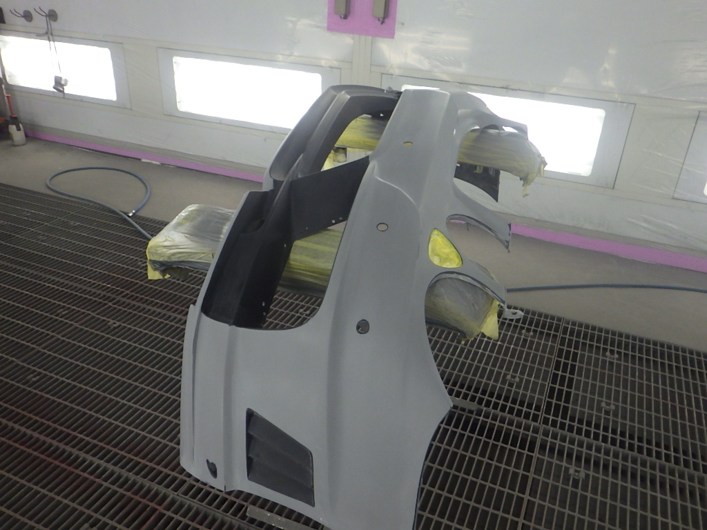 仮合わせ作業の後、エアロの削り作業、脱脂作業、マスキング作業、エアブローを行い、