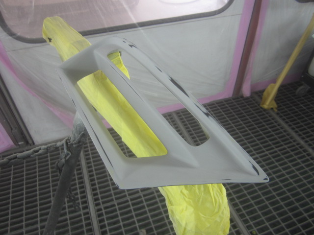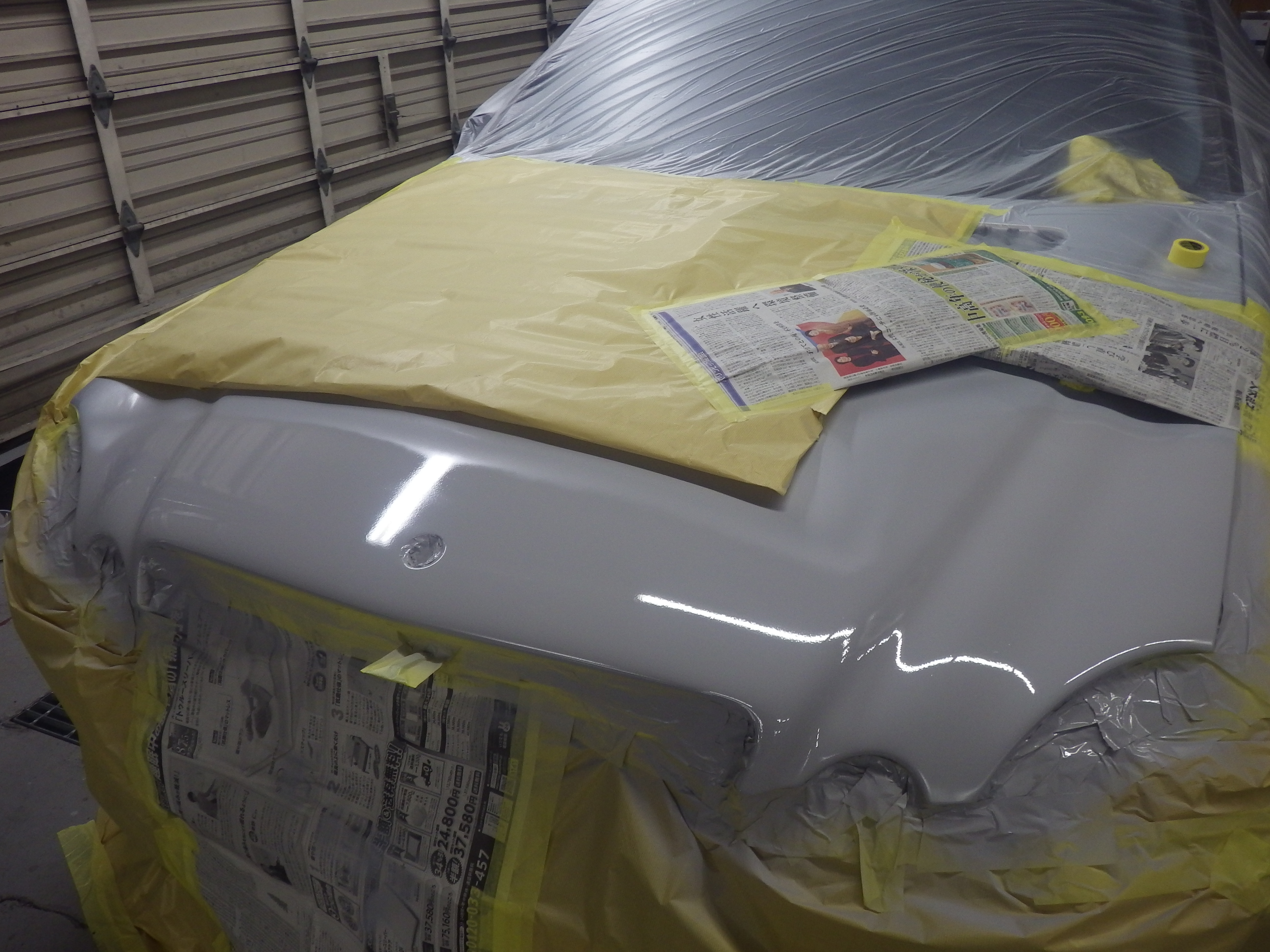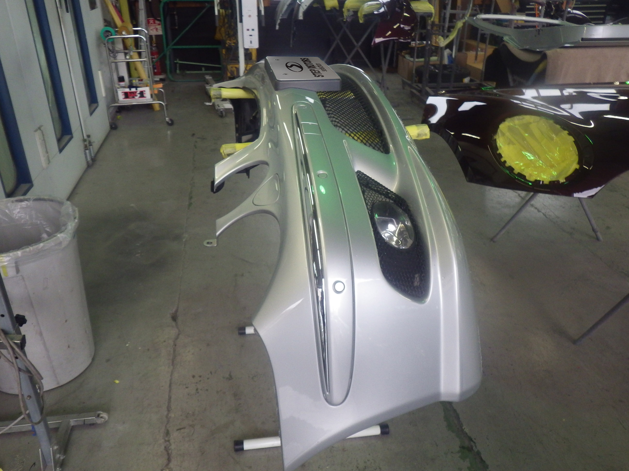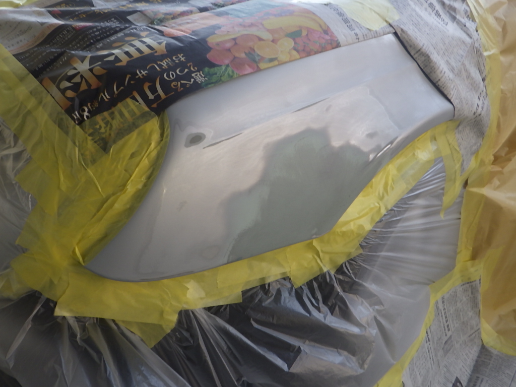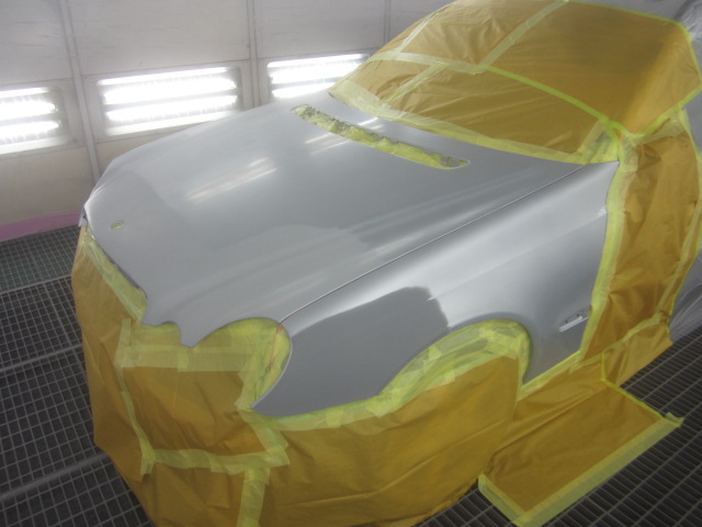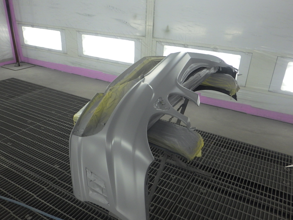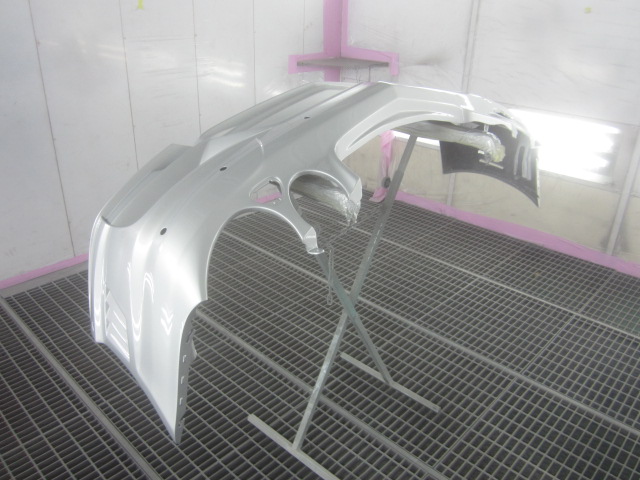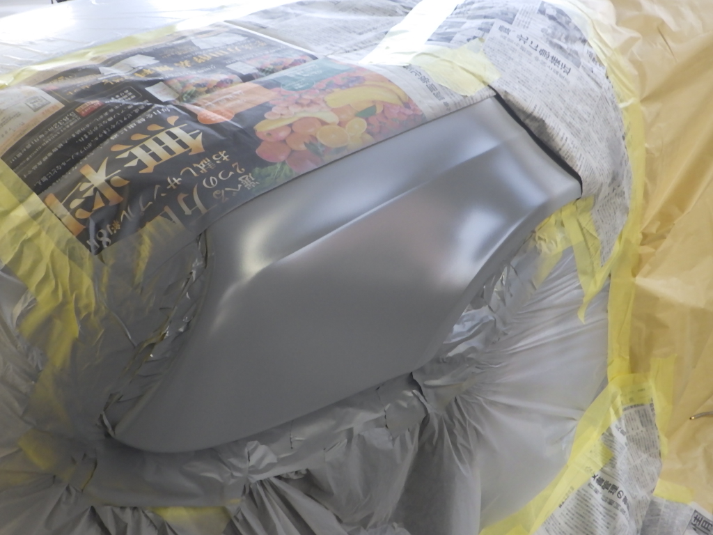 ベースコート(シルバー)、トップコート(クリヤー)の順に塗装作業を行いました。