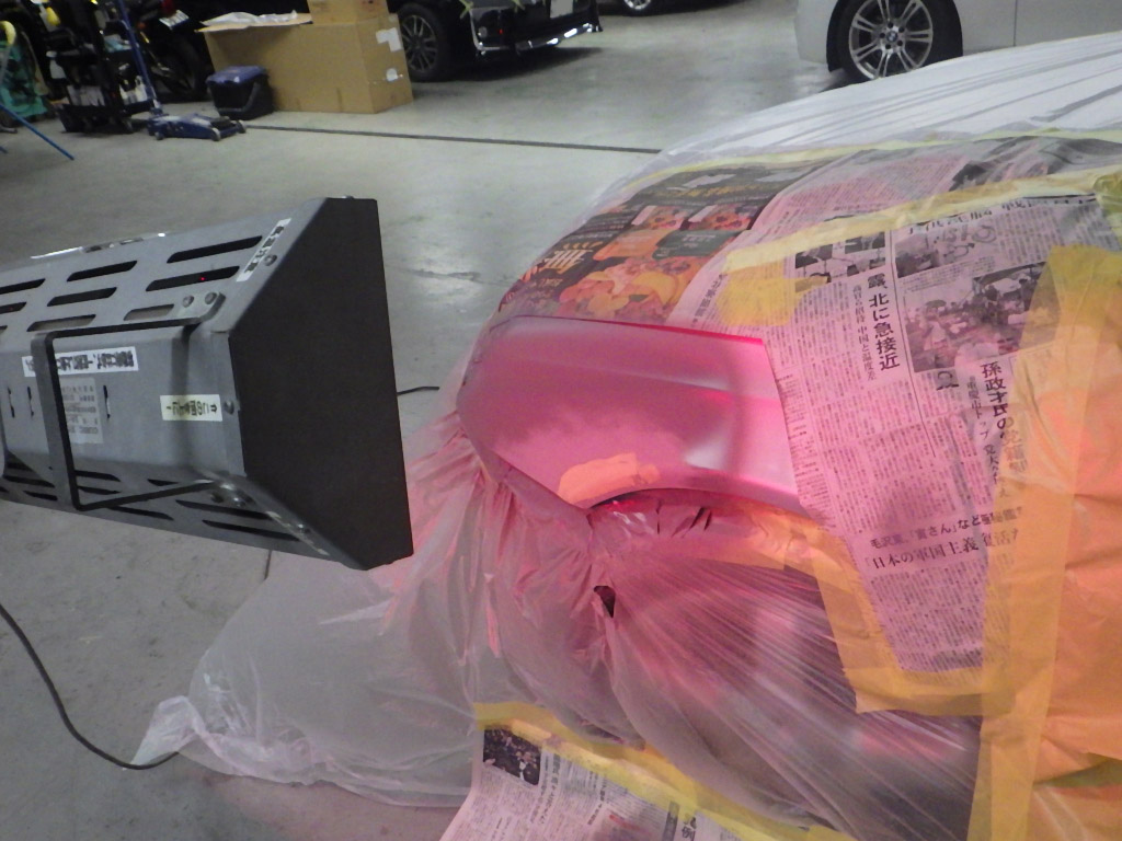 サフェーサーの塗装作業の後、遠赤外線を使用し、60℃以上30分間乾燥作業を行いました。