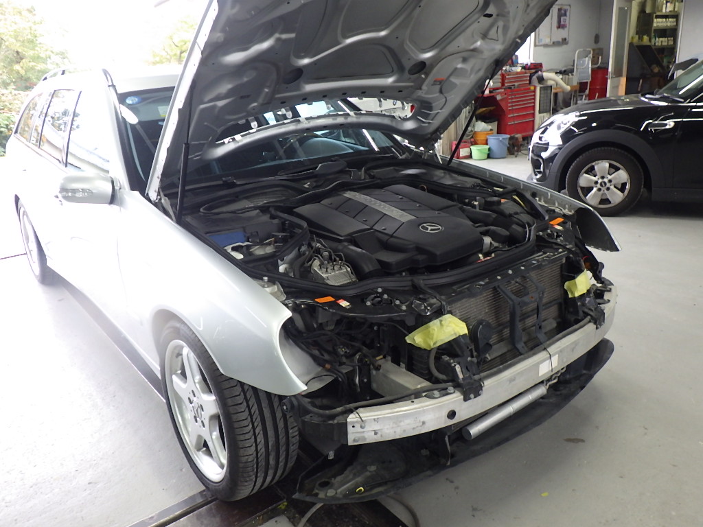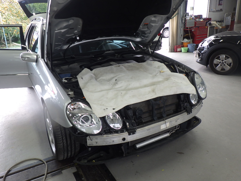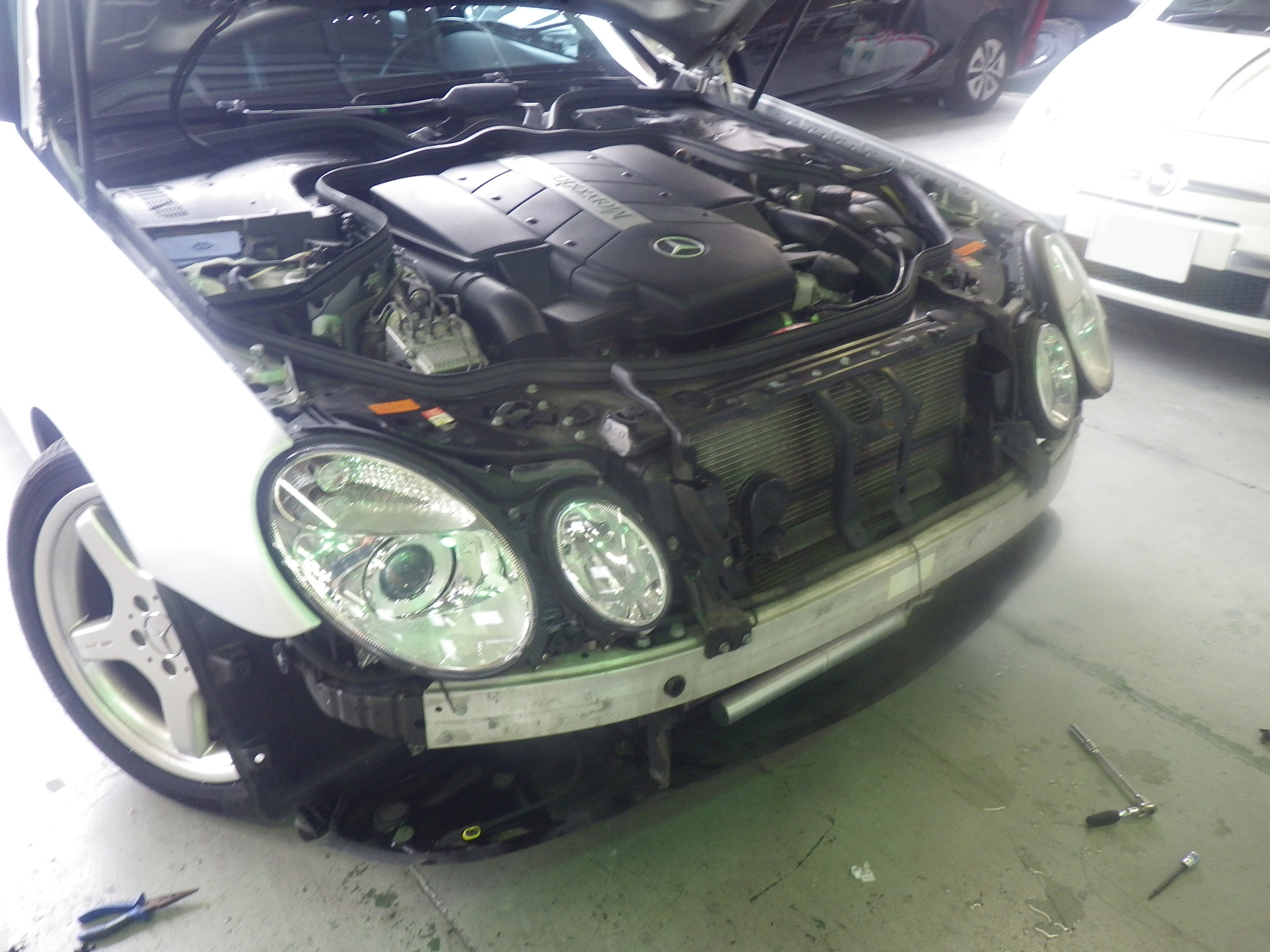 フロント足廻り損傷でのお預かりになります。 入庫後、入庫確認作業を行い、キズ、汚れ防止の為、ハンドルカバー、 シートカバーの取り付けを行いました。 入庫確認の後…