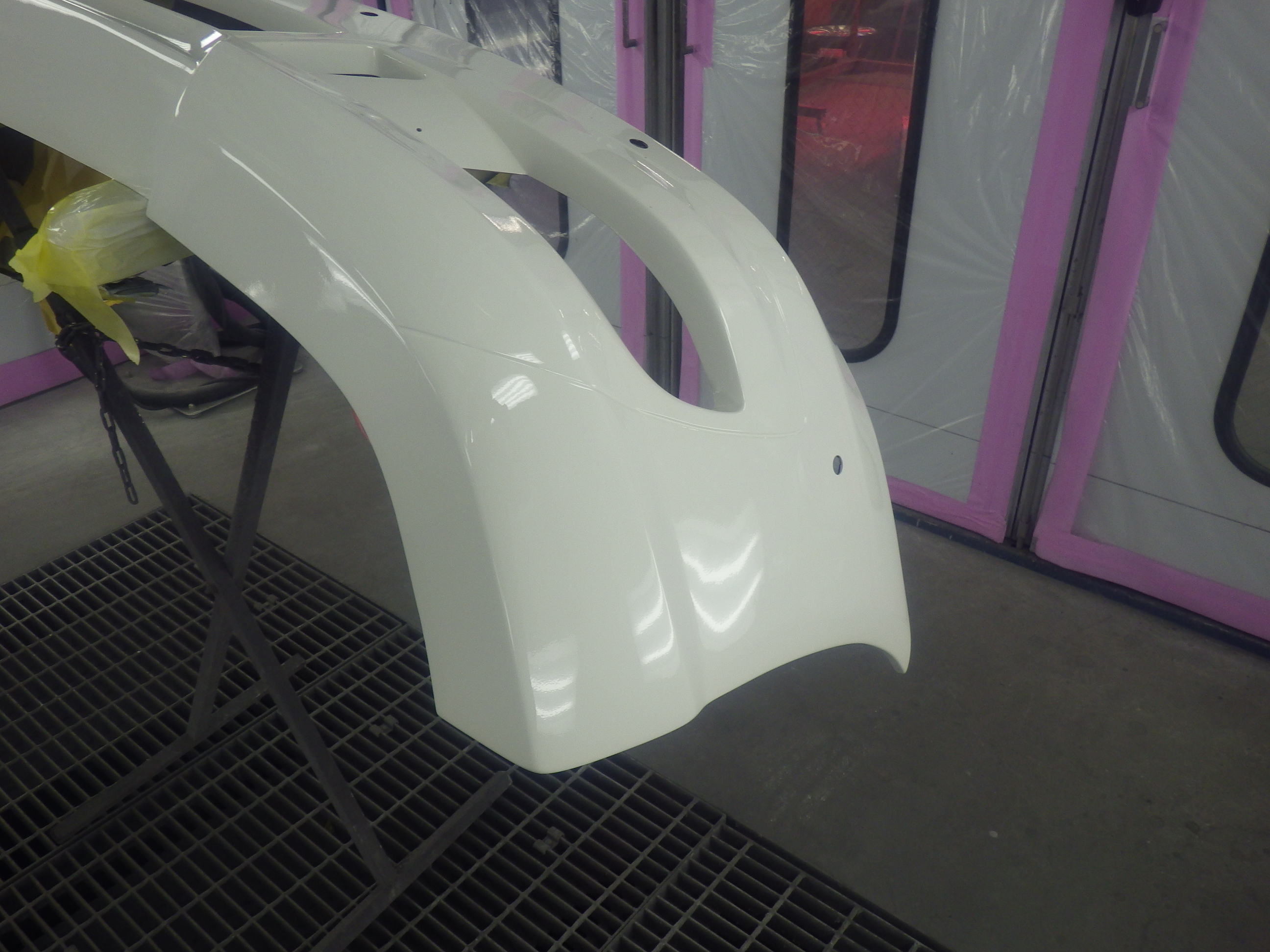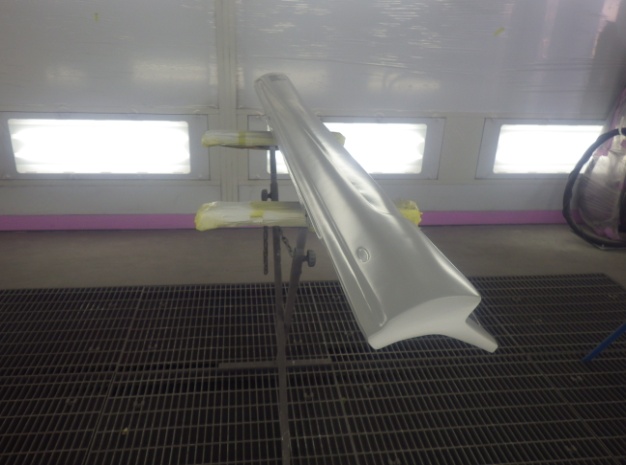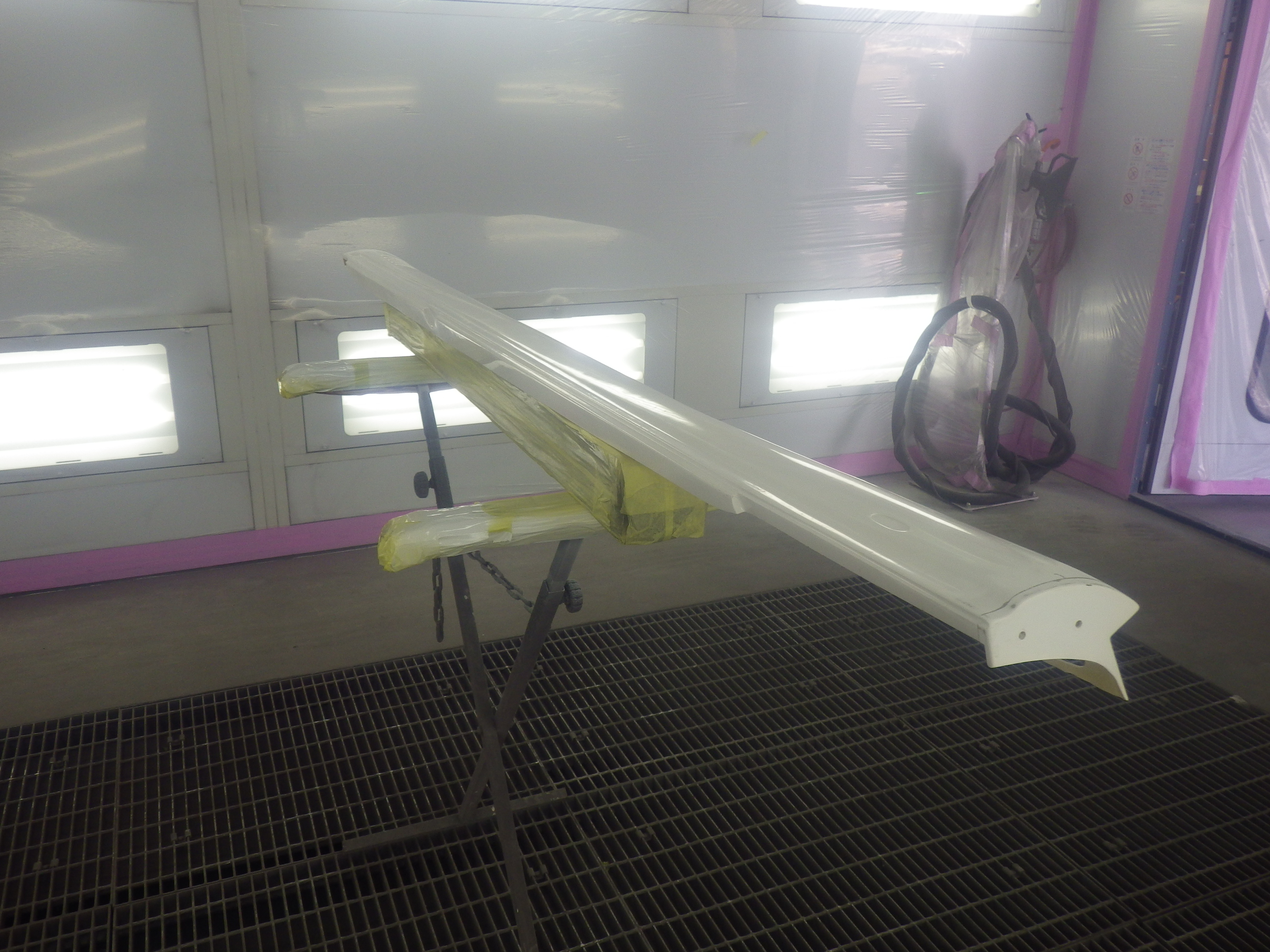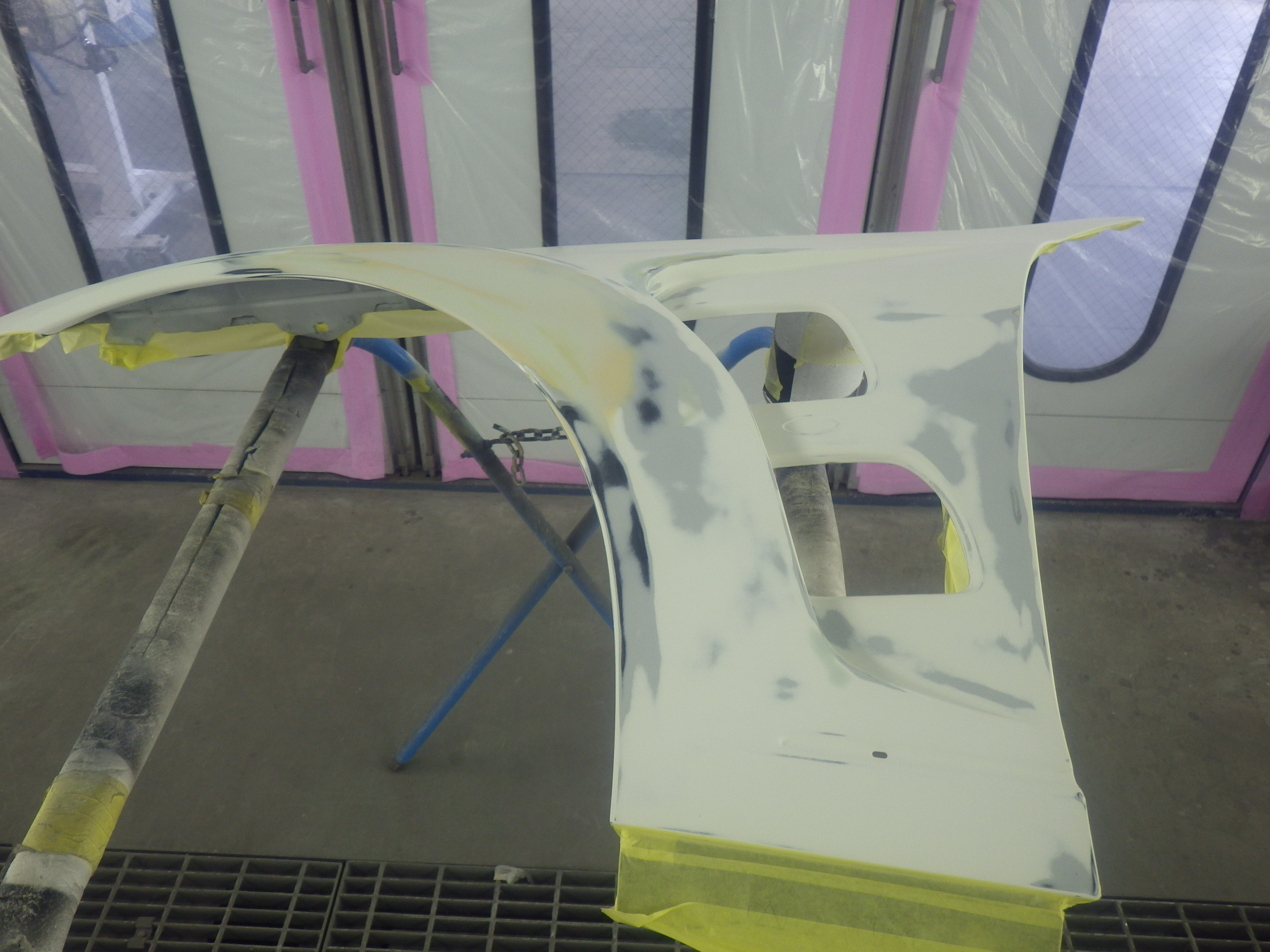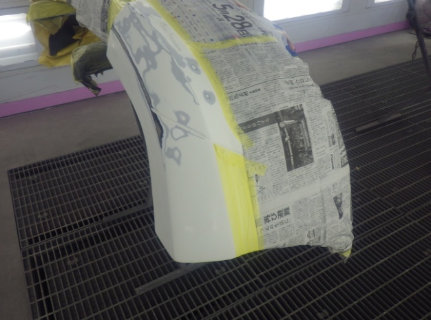 ベースコート(白)、トップコート(クリヤー)の順に塗装作業を行いました。