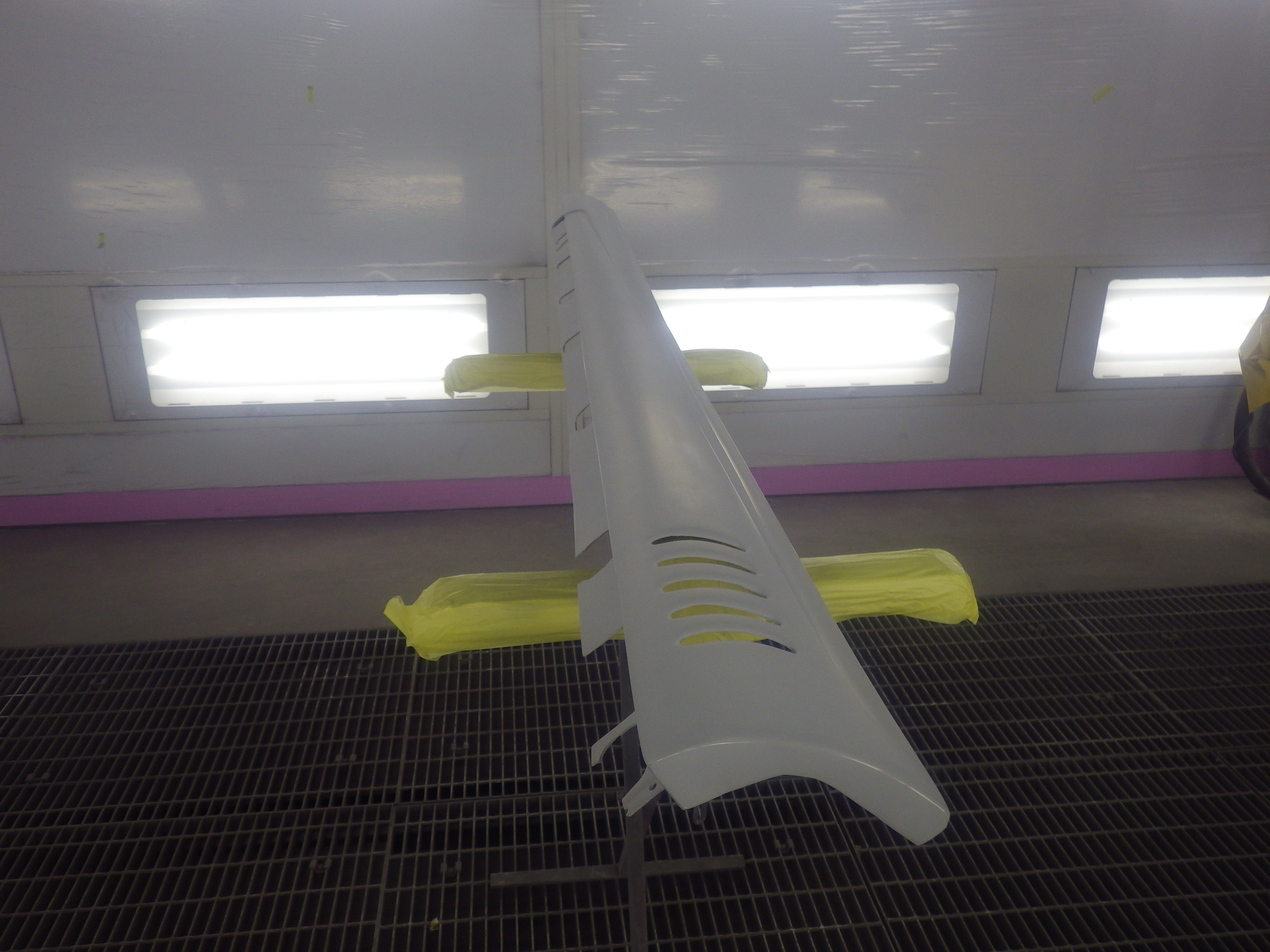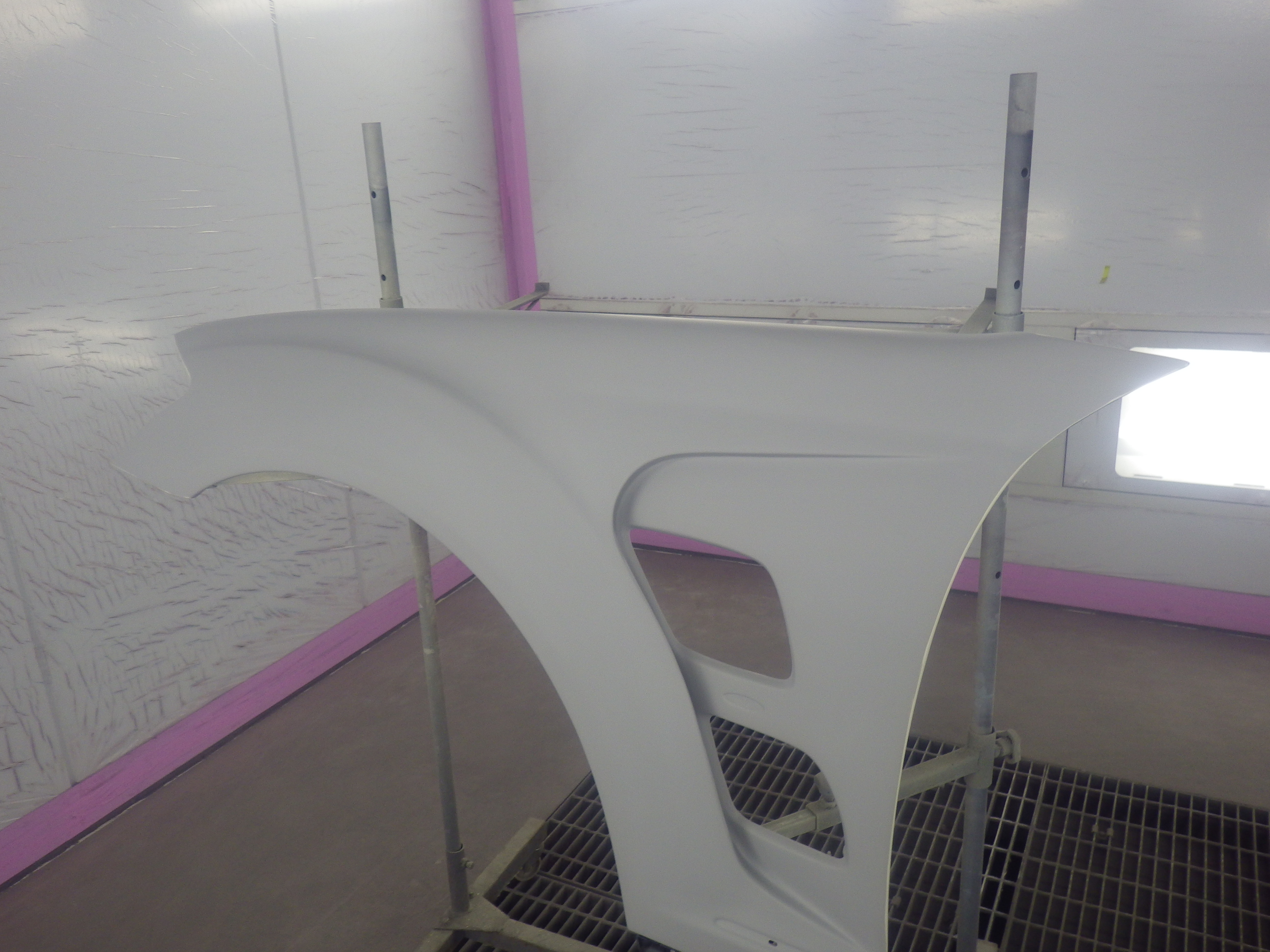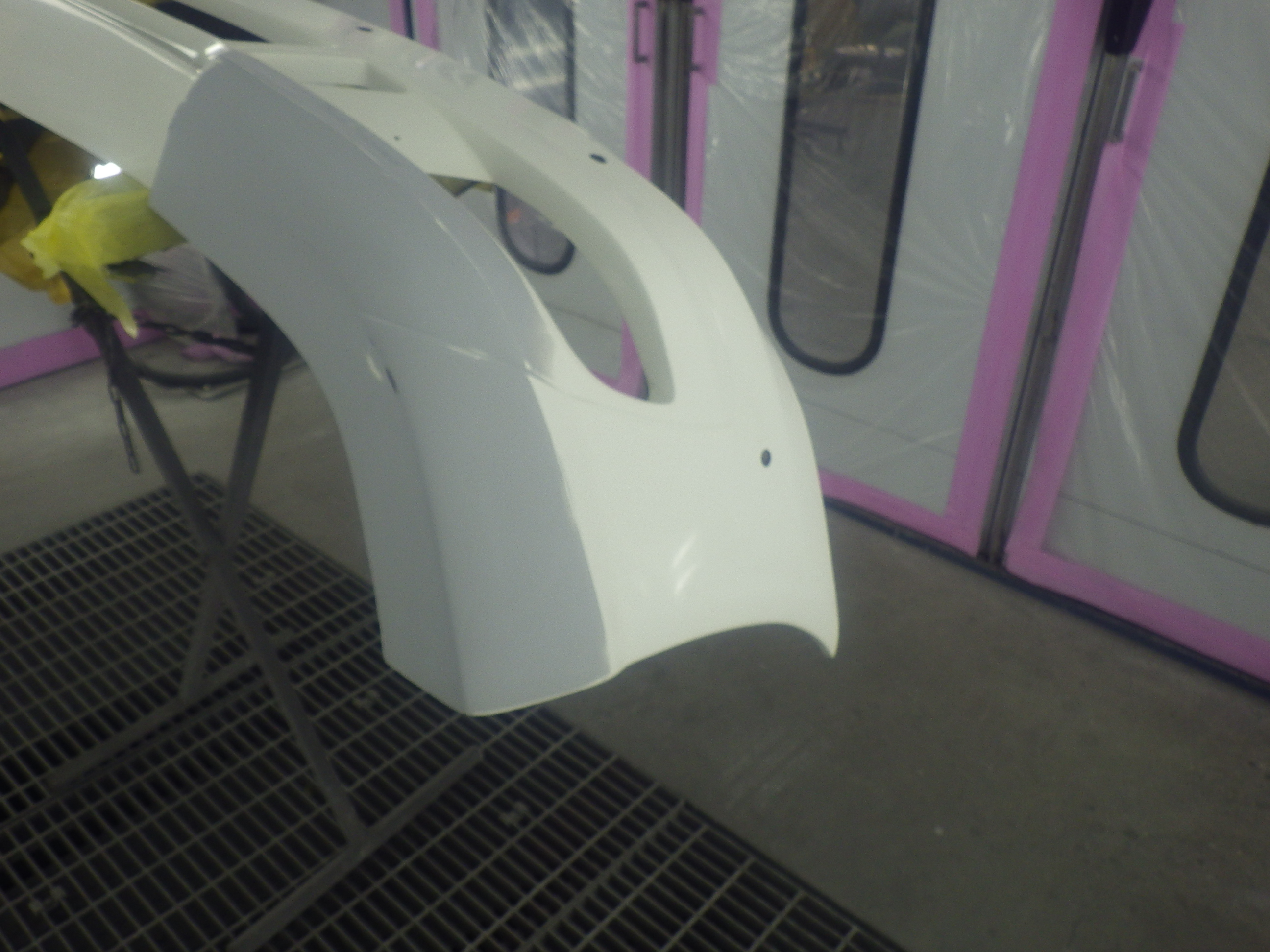 ベースコート(白)、トップコート(クリヤー)の順に塗装作業を行いました。
