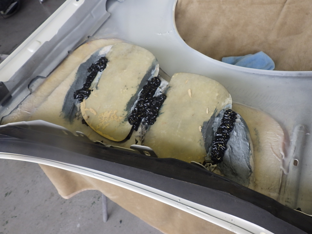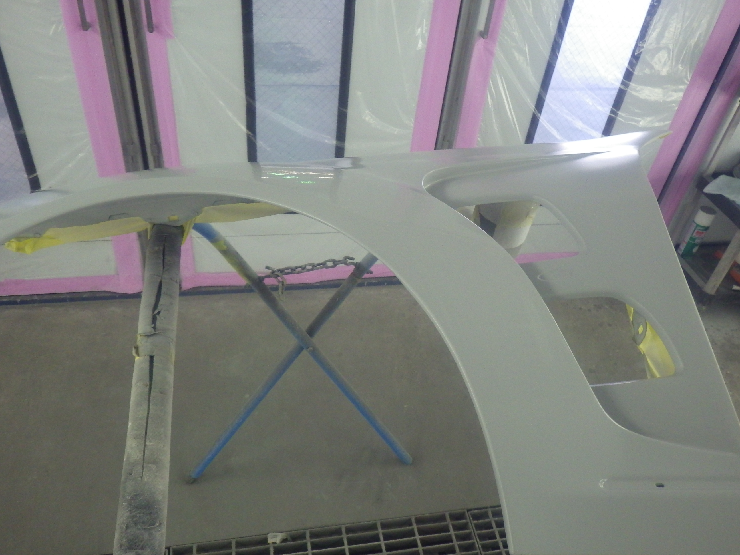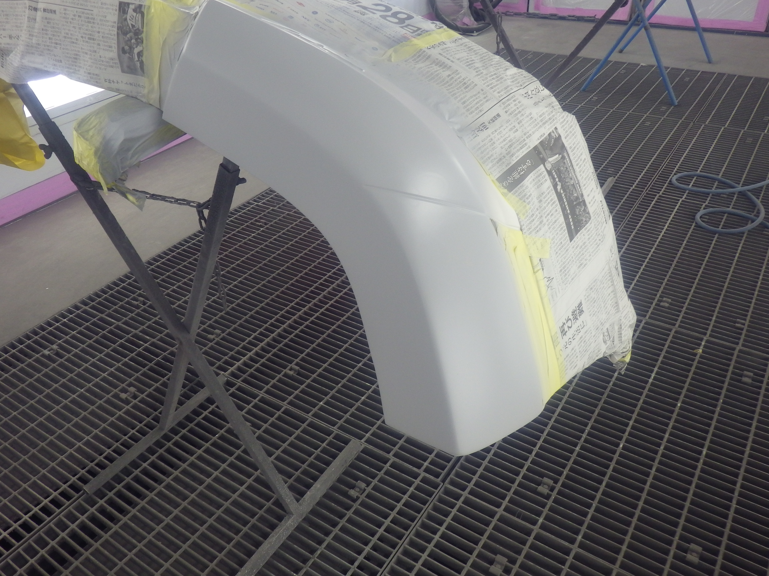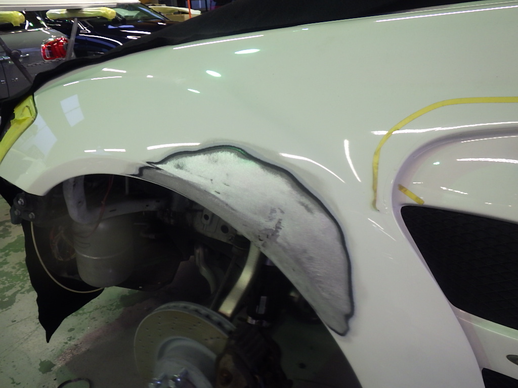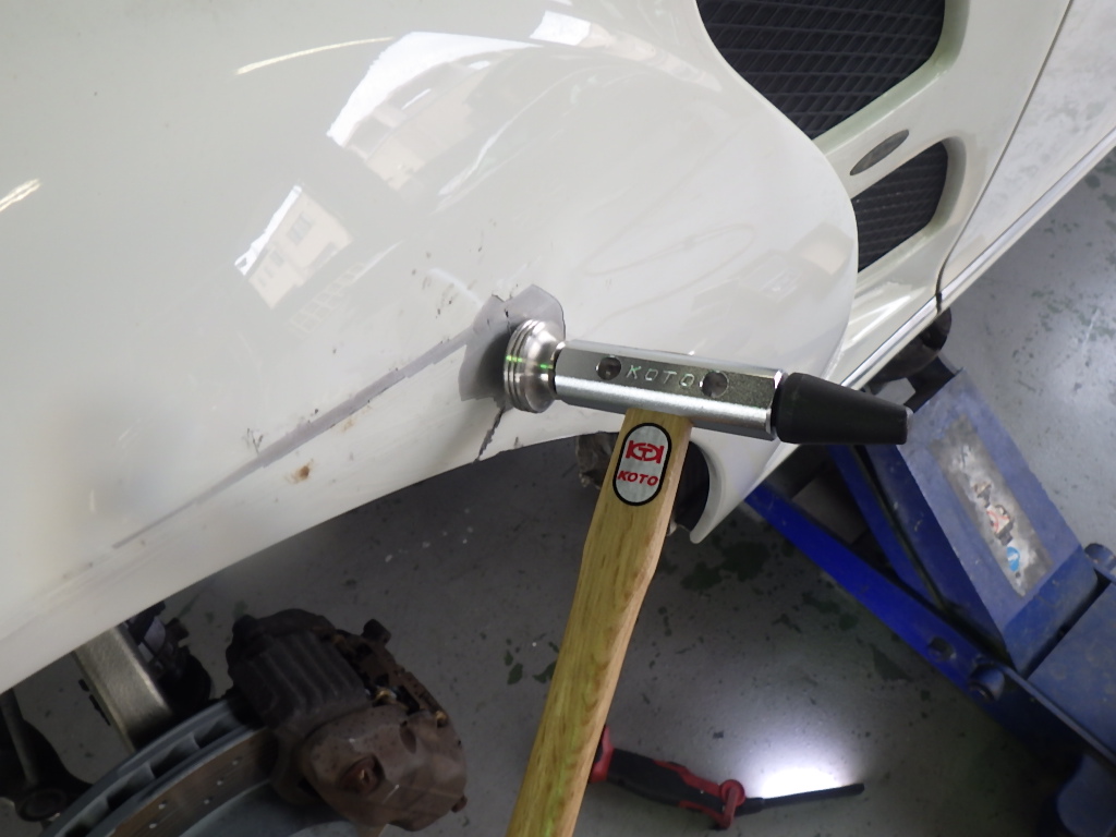 交換作業の後、フェンダーの板金作業を行いました。