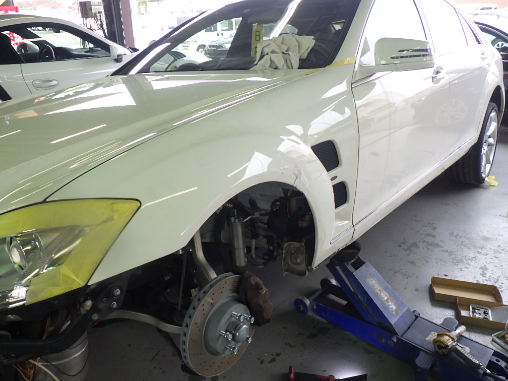 修正作業を行う為、損傷のある足回りの交換作業を行いました。