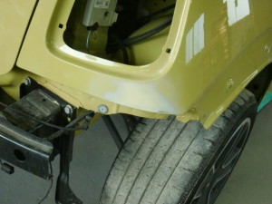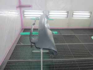 EPプライマーの塗装作業、乾燥の後、パテ修正を行い、