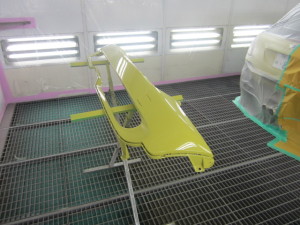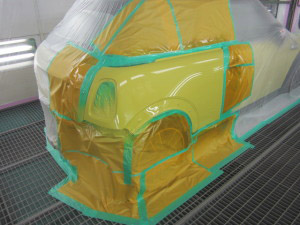 ベースコート(黄)、トップコート(クリヤー)の順に塗装作業を行いました。