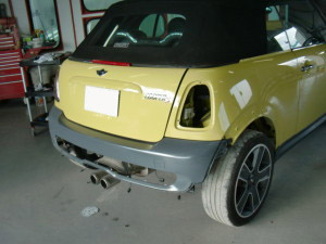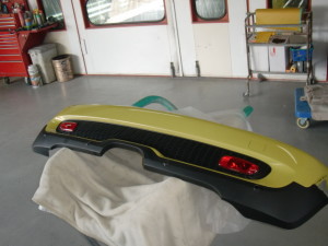 バンパー、テールランプ及び付属部品の分解作業の後、仮合わせ作業、