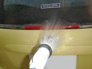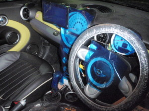 入庫時確認作業の後、室内のキズ汚れ防止の為に、ハンドル、シートカバー、