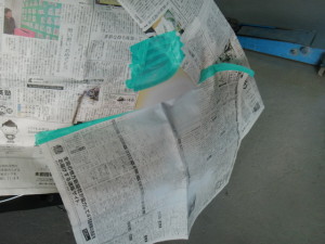 サフェーサー乾燥の後、足付け作業、マスキング作業、脱脂作業、