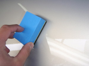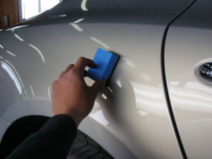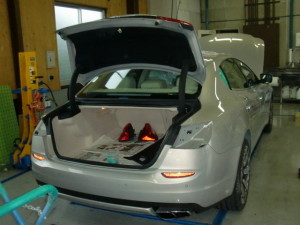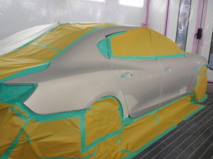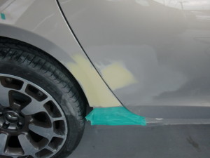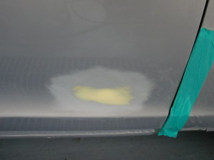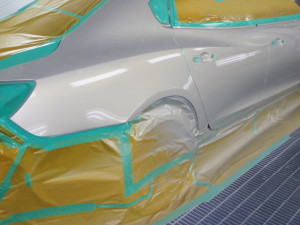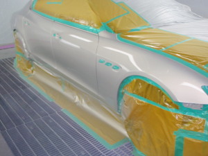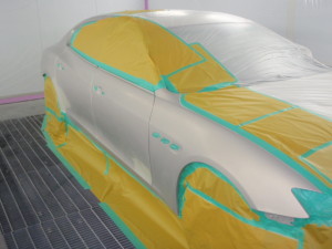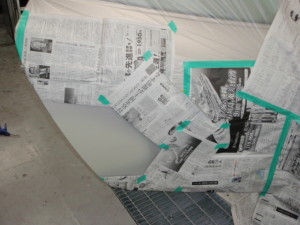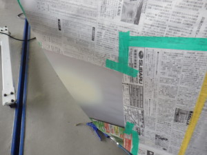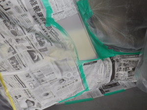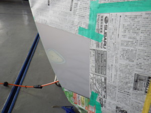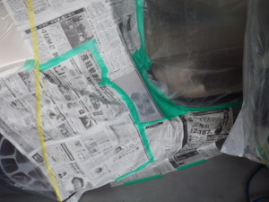 パテ修正作業の後、マスキング作業、脱脂作業、エアブローを行い、