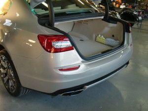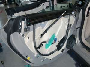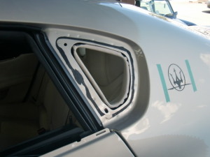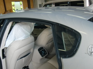 クォーターガラス取り付けルーフドリップモール取り付け後、水密チェック、コーティング施工、各種チェック作業を行って完成です。