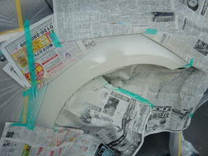 塗装ブース内に入れ、マスキング作業・シリコンオフで脱脂。