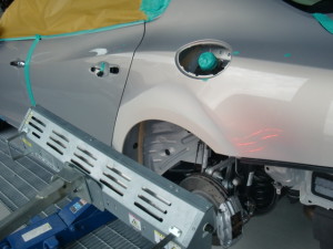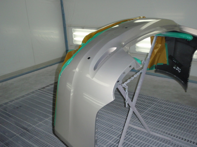 パネル修正後、パテとの密着性向上の為に、EPプライマーの塗装作業を行いました。