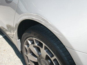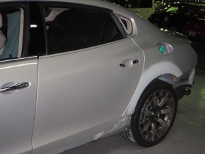 左リヤフェンダー損傷での入庫です。