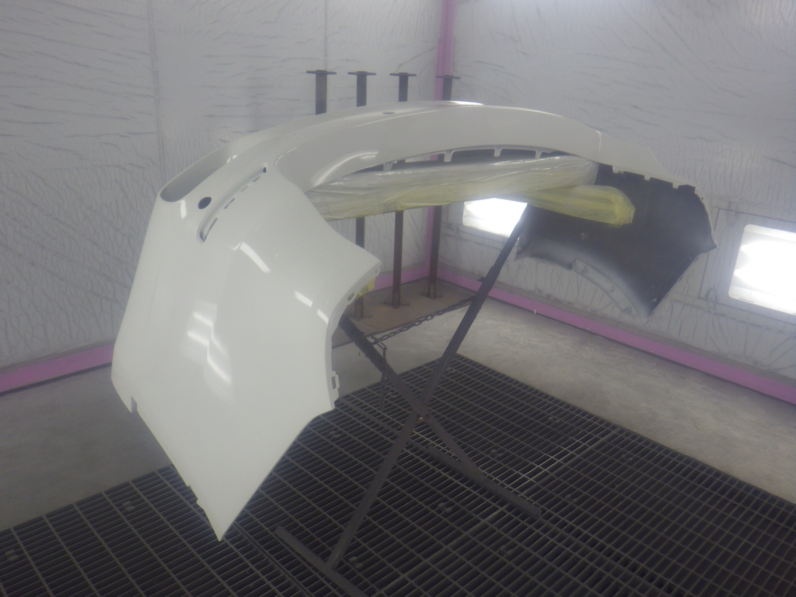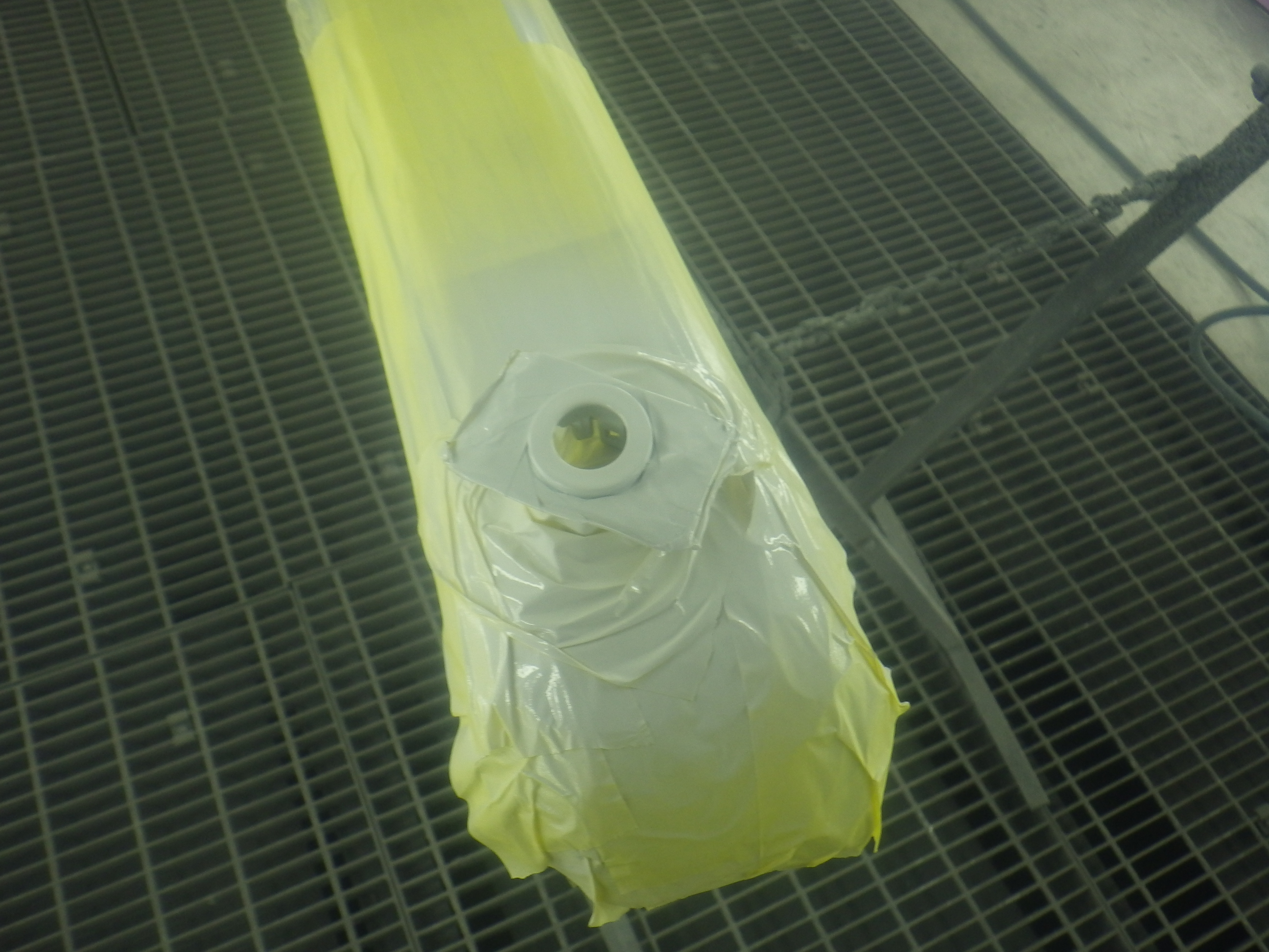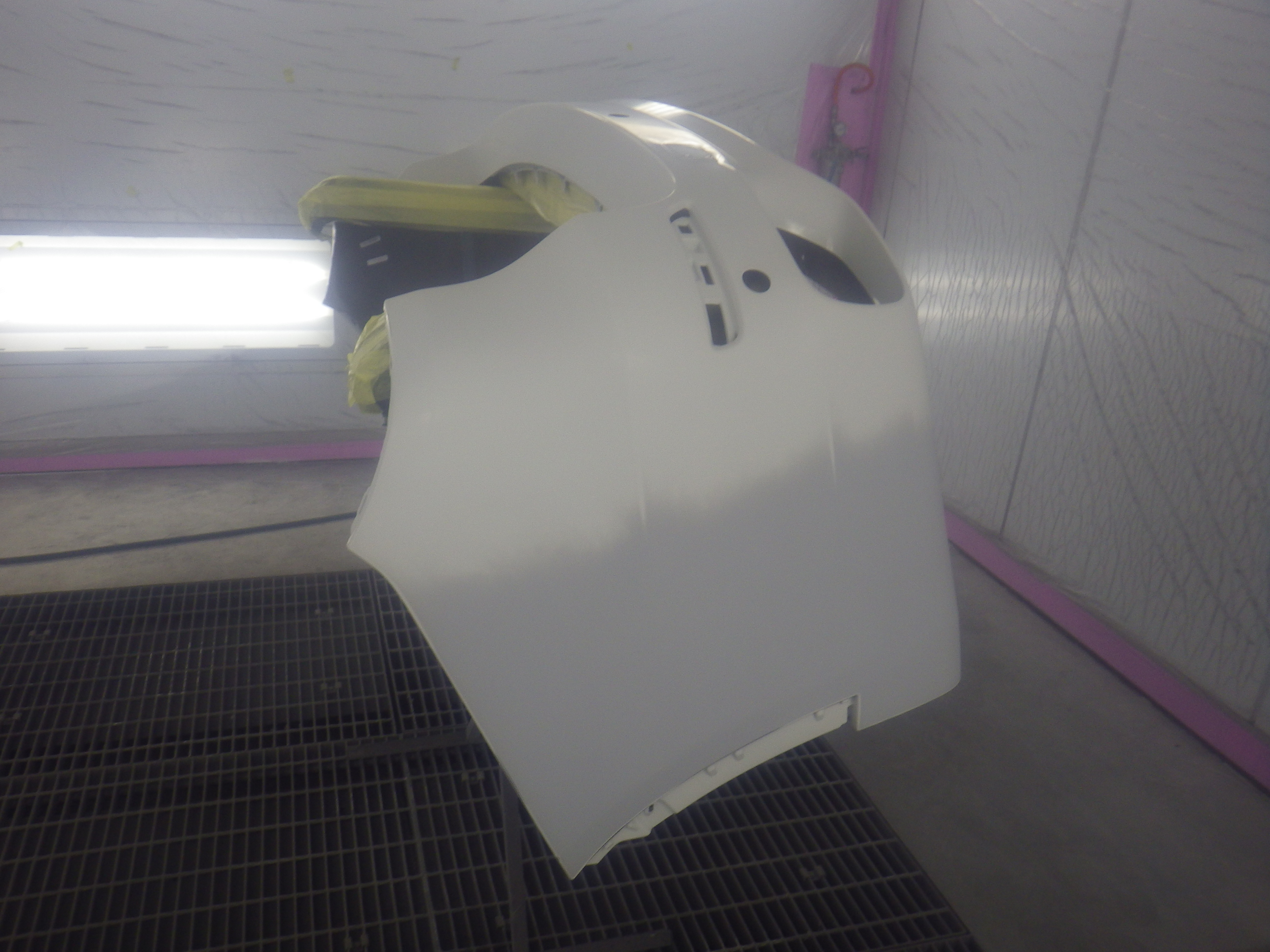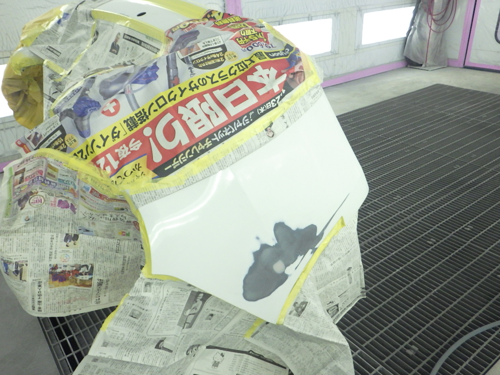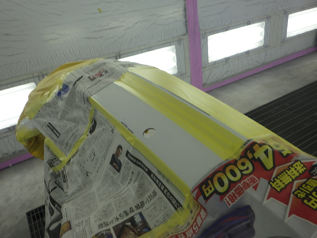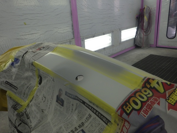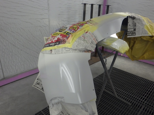 ベースコート(白)、トップコート(クリヤー)の順に塗装作業を行いました。