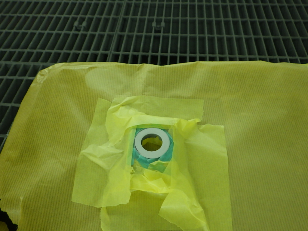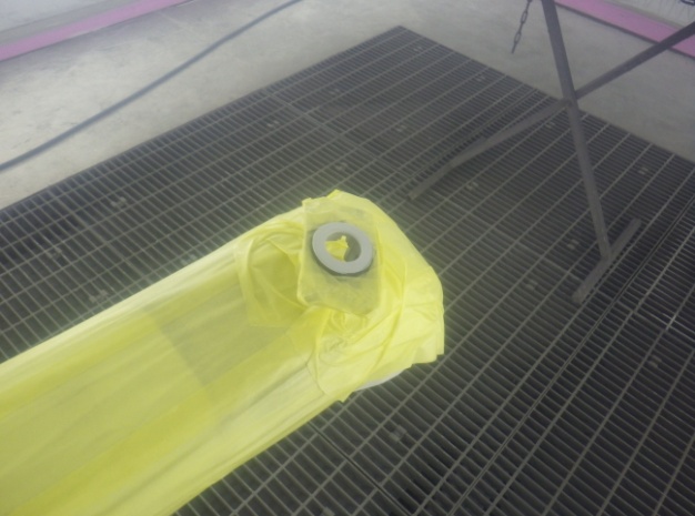 サフェーサー乾燥の後、足付け作業、脱脂作業、エアブローを行い、