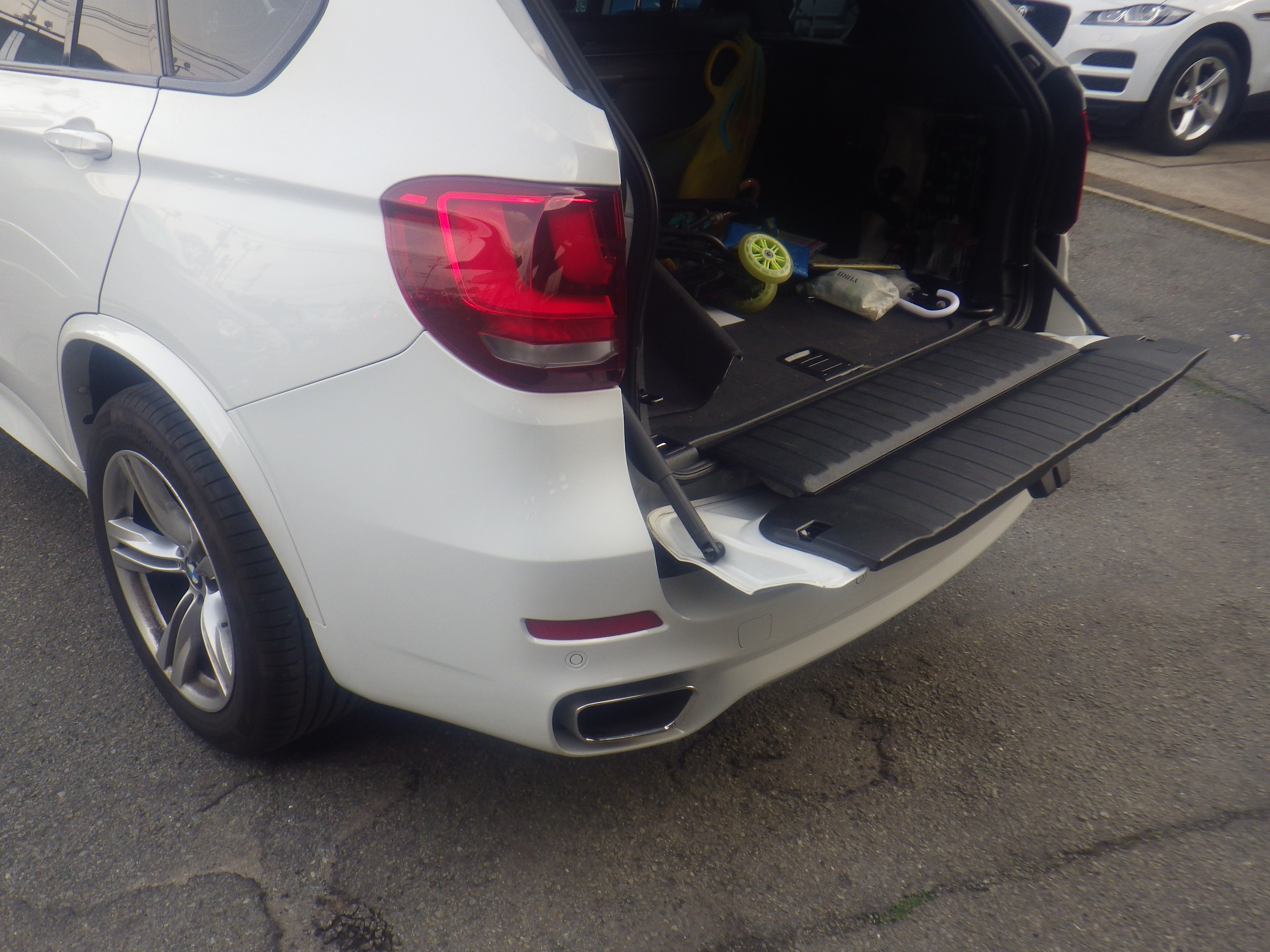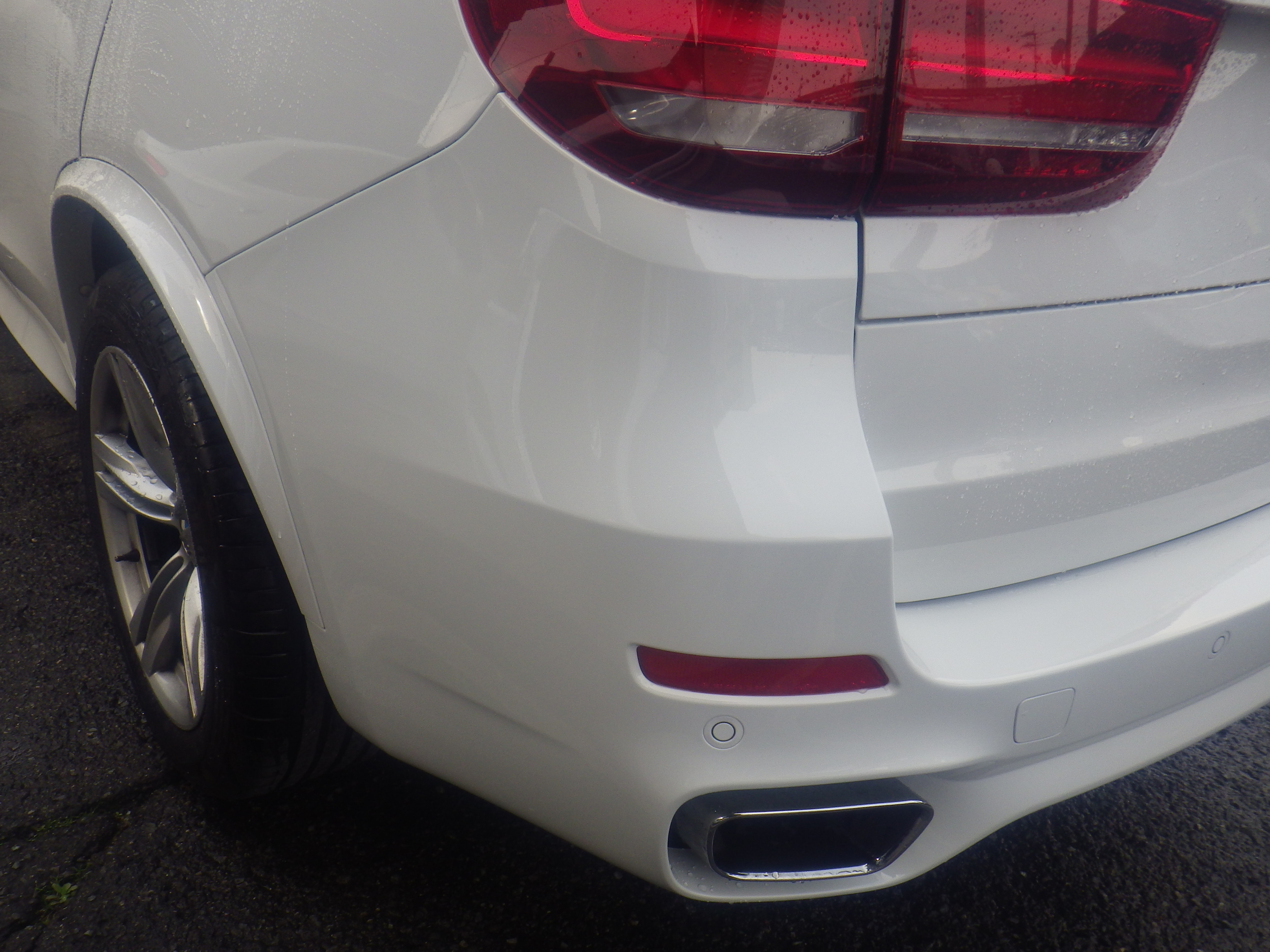 【鈑金塗装】【事故】兵庫県神戸市、A様、BMW、X5、F15、リアバンパー損傷へこみ修理レポートです!ありがとうございました。