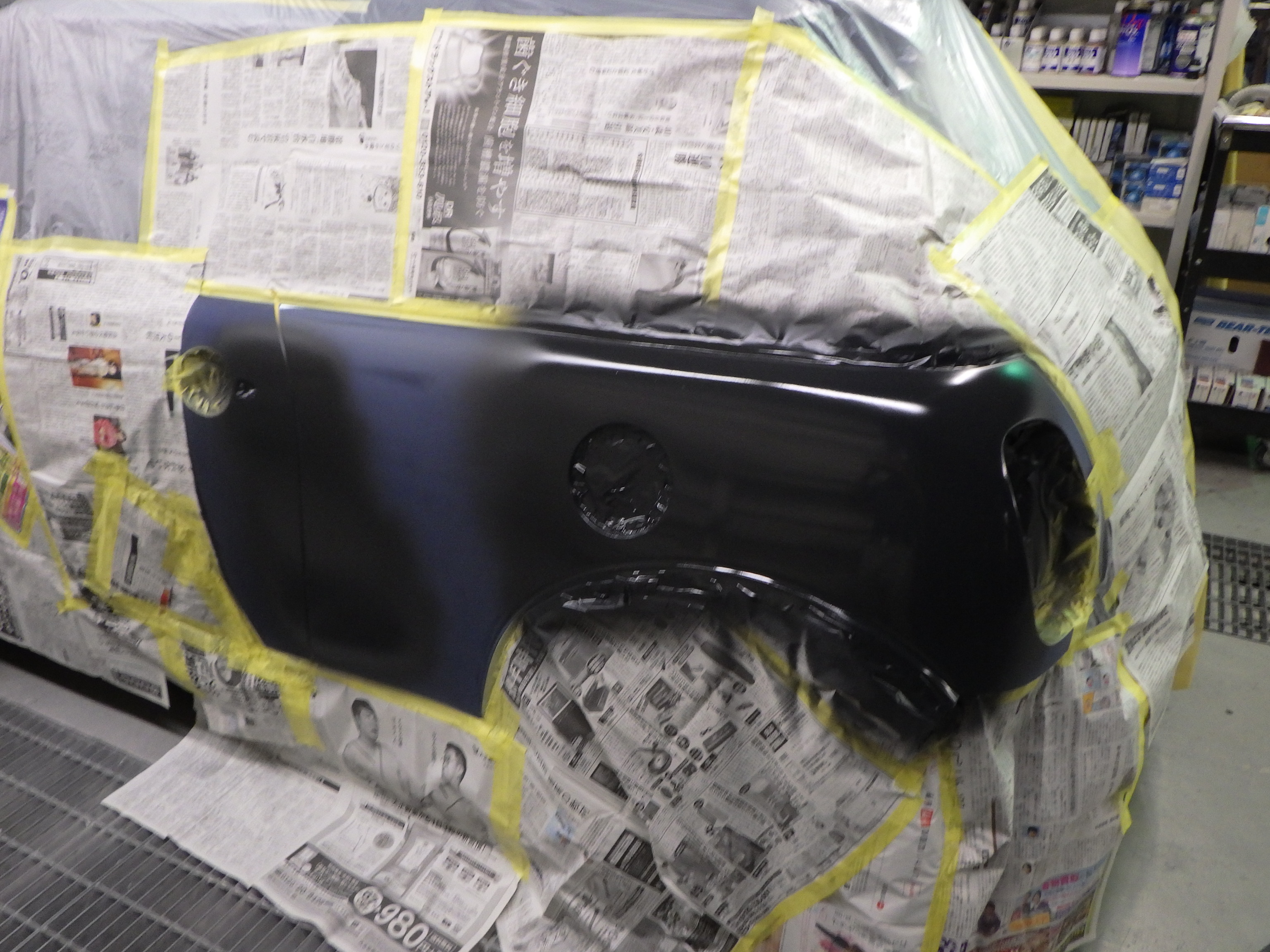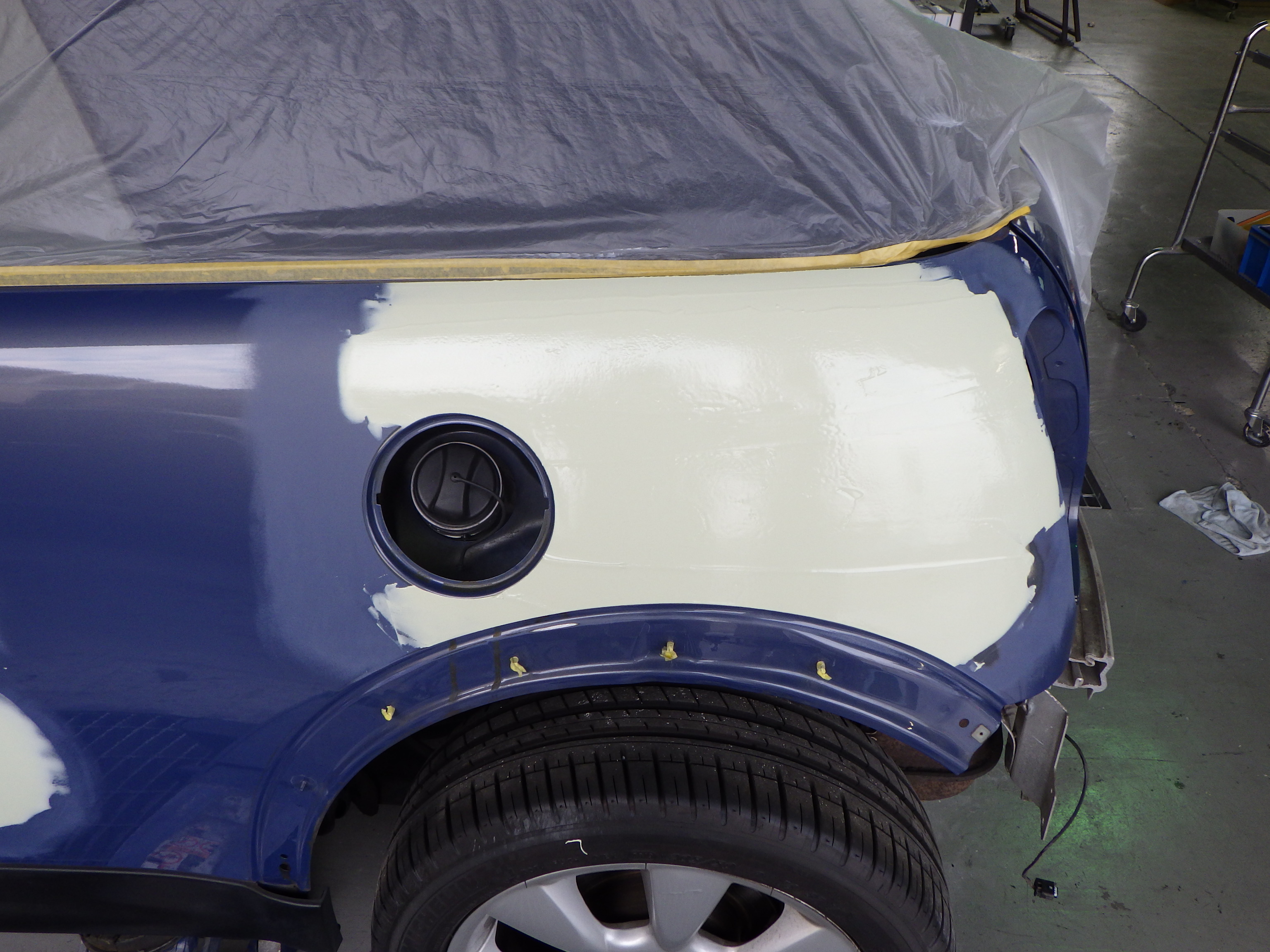 密着性向上の為、プライマーの塗装作業を行い、サフェーサーの塗装作業を行いました。