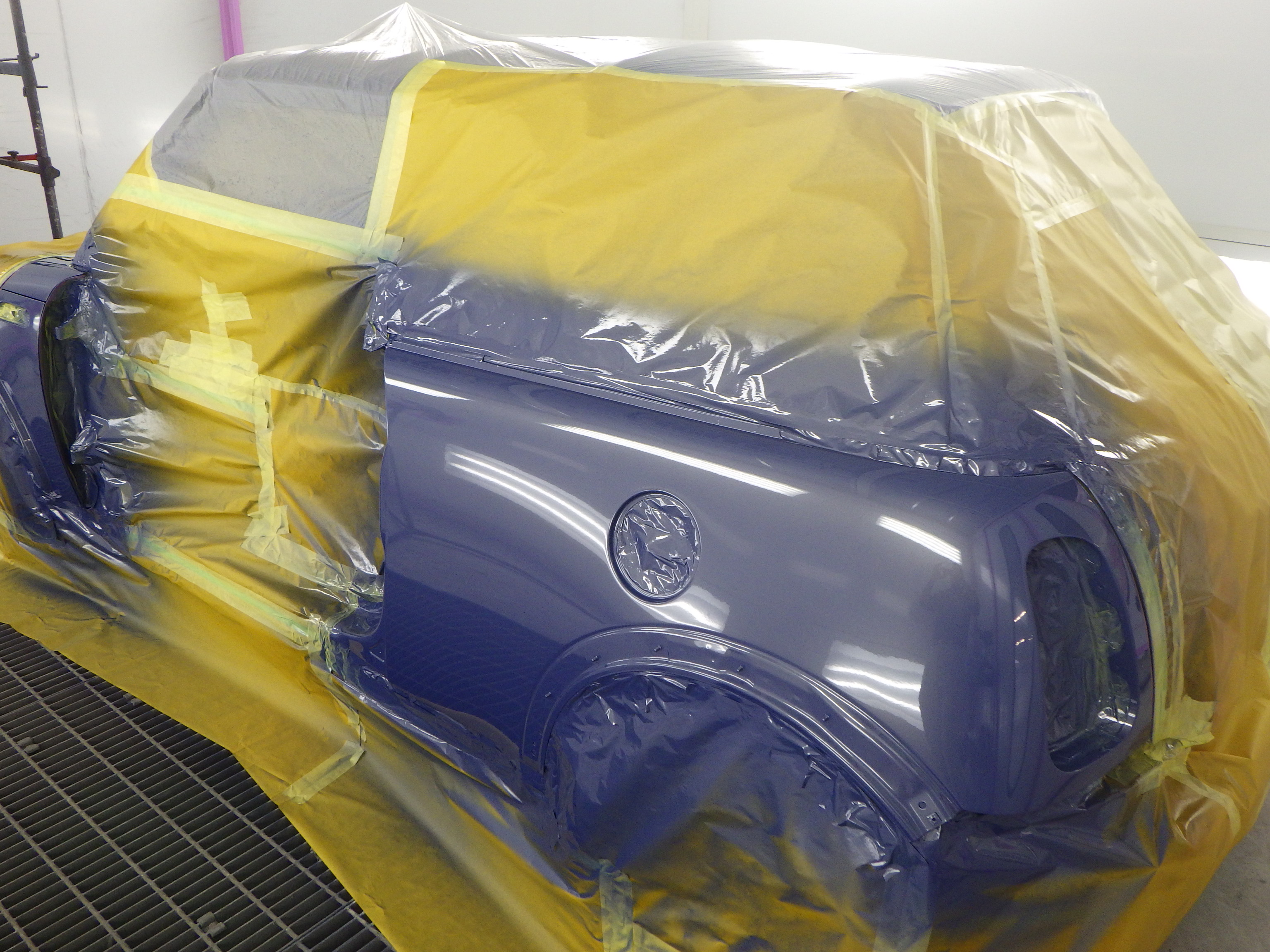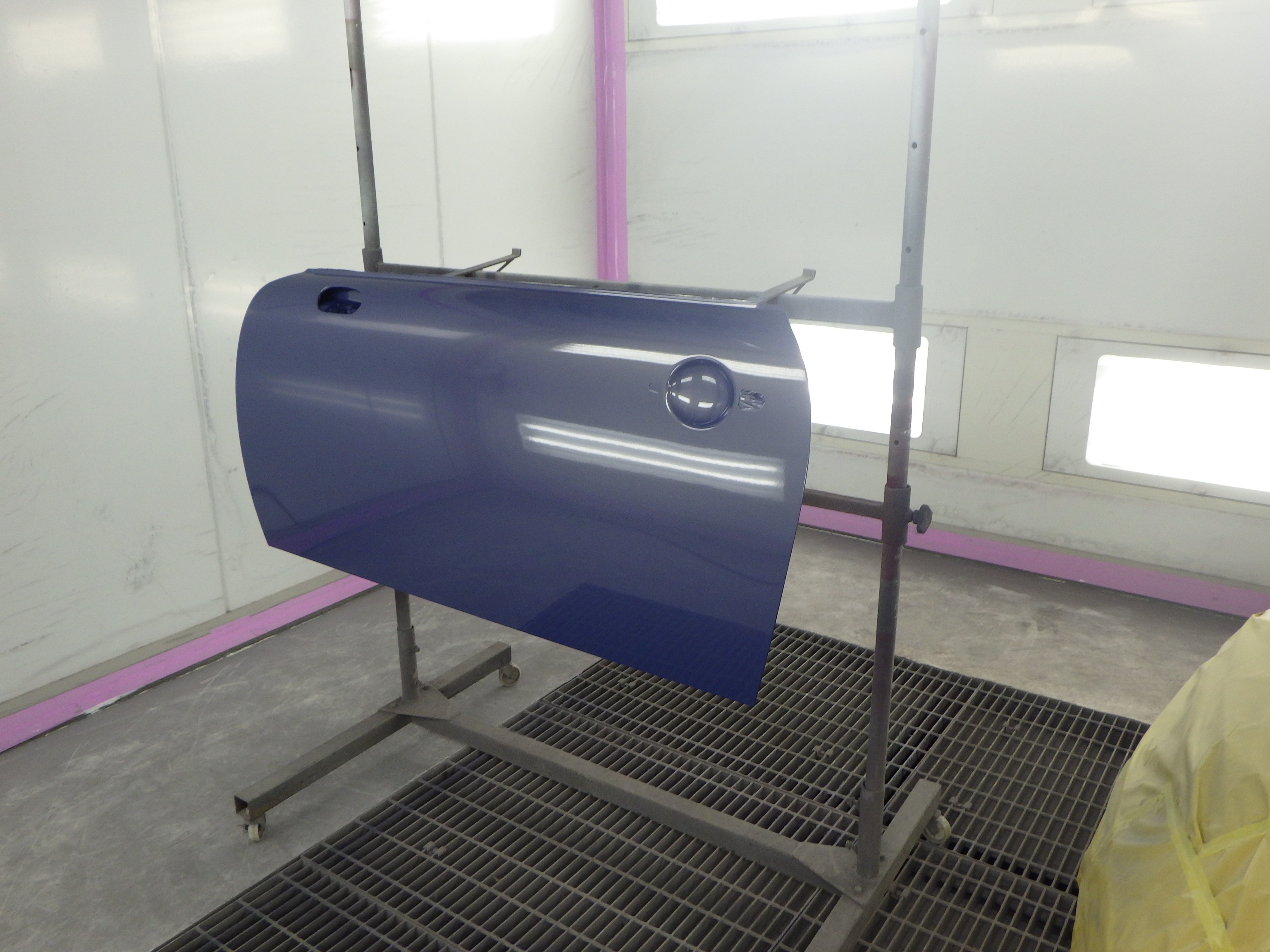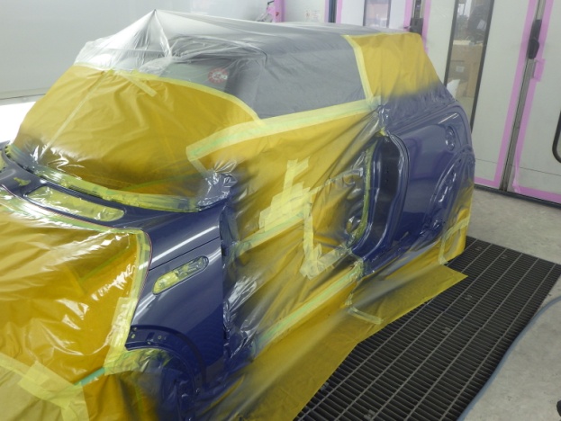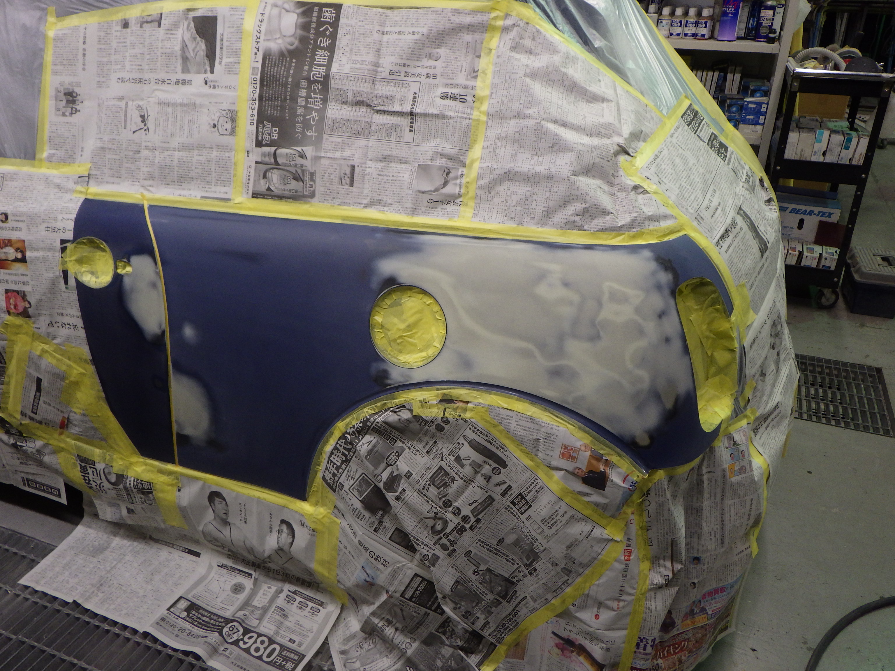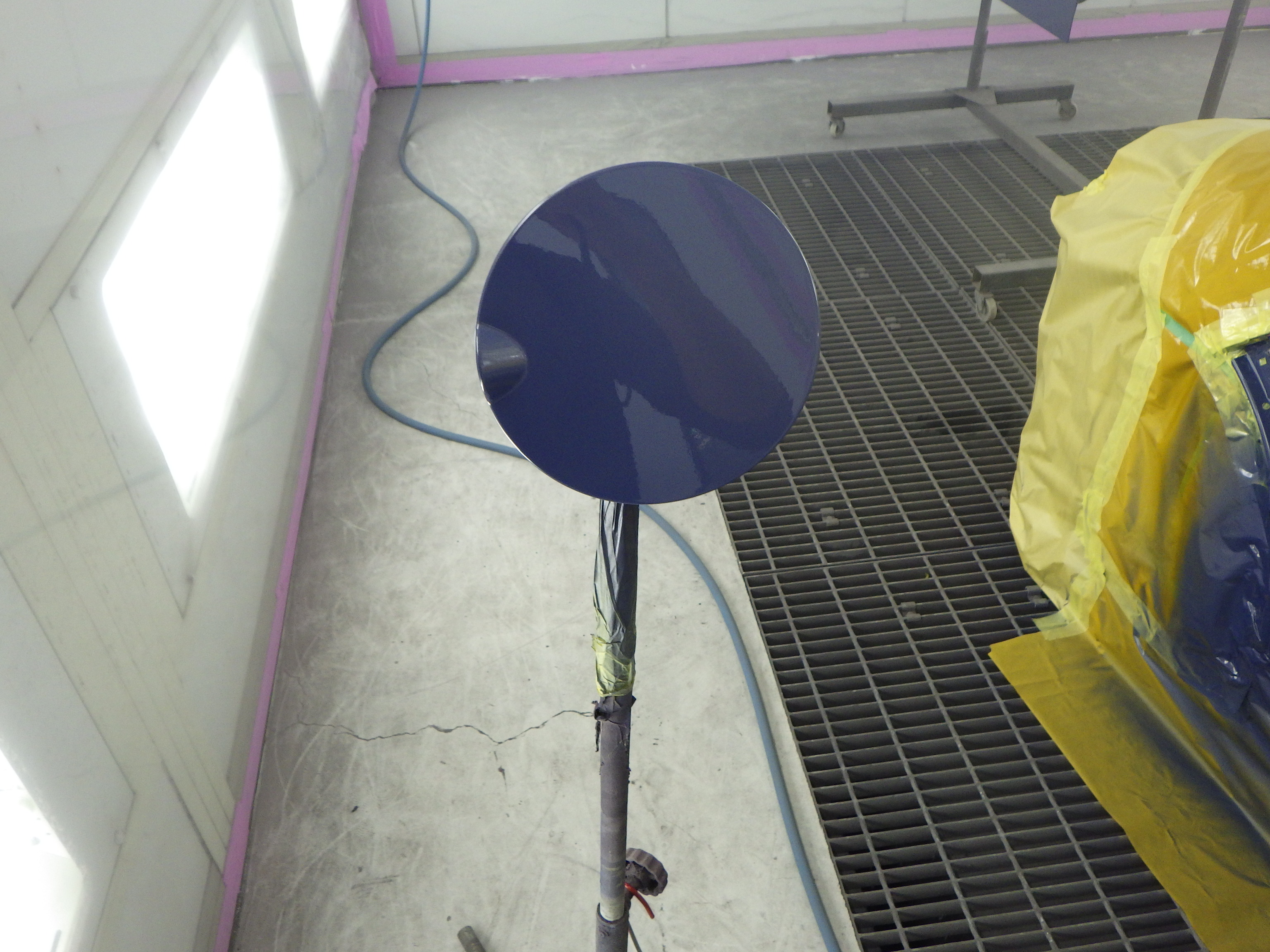 ベースコート(青)、トップコート(クリヤー)の順に塗装作業を行いました。