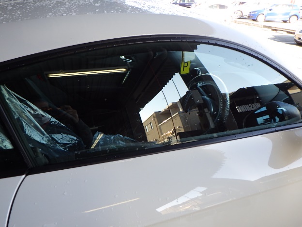 右ドアガラス損傷でのお預かりになります。