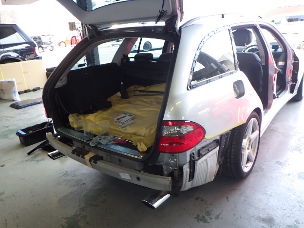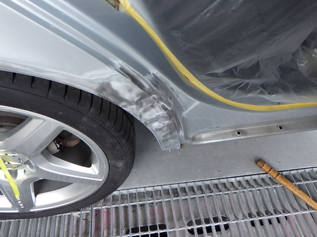 分解作業の後、中古パネルの付替えを行い、リアフェンダーの板金作業を行いました。