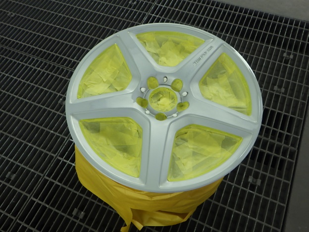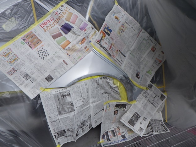 乾燥後、塗装準備(足付け、マスキング、脱脂、エアブロー)を行い、