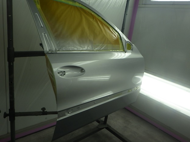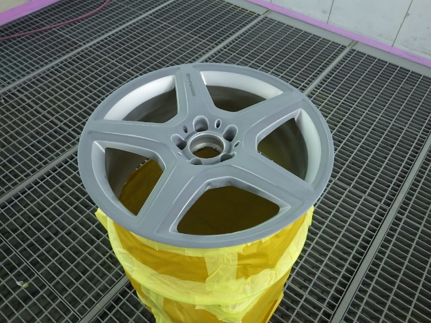 ベースコート(シルバー)、トップコート(クリヤー)の順に塗装作業を行いました。