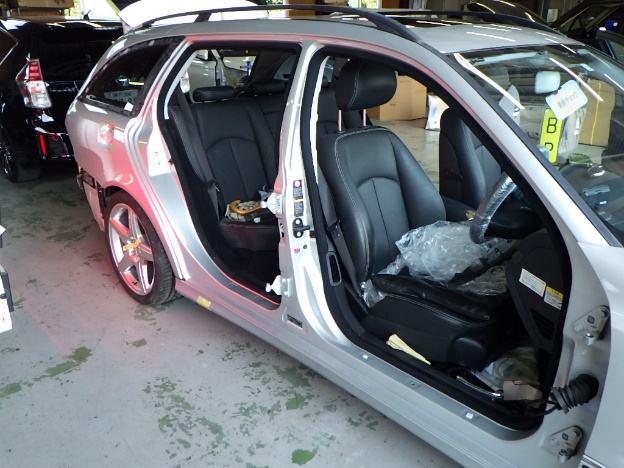 フロント足廻り損傷でのお預かりになります。 入庫後、入庫確認作業を行い、キズ、汚れ防止の為、ハンドルカバー、 シートカバーの取り付けを行いました。 入庫確認の後…