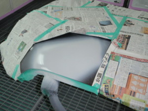 プライマー乾燥の後、パテ修正、パテサンディング作業、マスキング作業、
