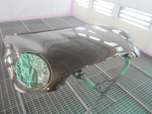 ベースコート(茶)、トップコート(クリヤー)の順に塗装作業を行いました。
