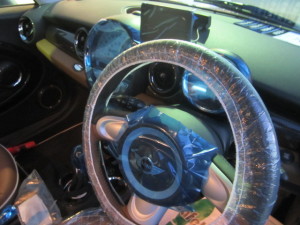 入庫時確認作業の後、室内のキズ汚れ防止の為に、ハンドル、シートカバー、