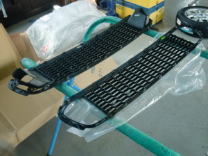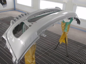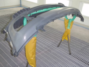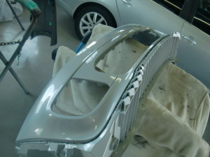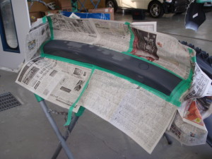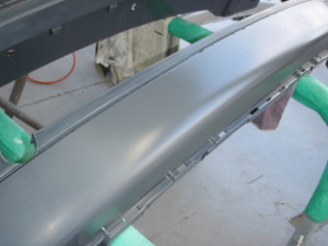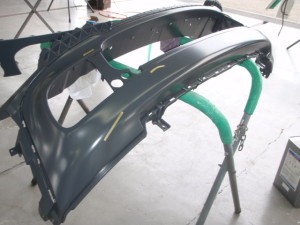 新品バンパー仮合わせ完了後、不具合箇所研ぎ出して、サフェーサーを塗装しました。