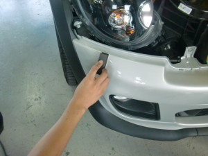 乾燥完了後、バンパー付属品組み付け、車両本体に組み付け作業の後、磨き作業を進めていきました。