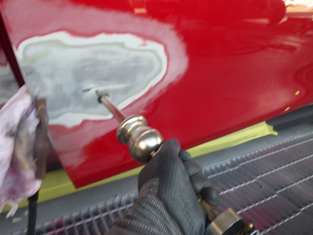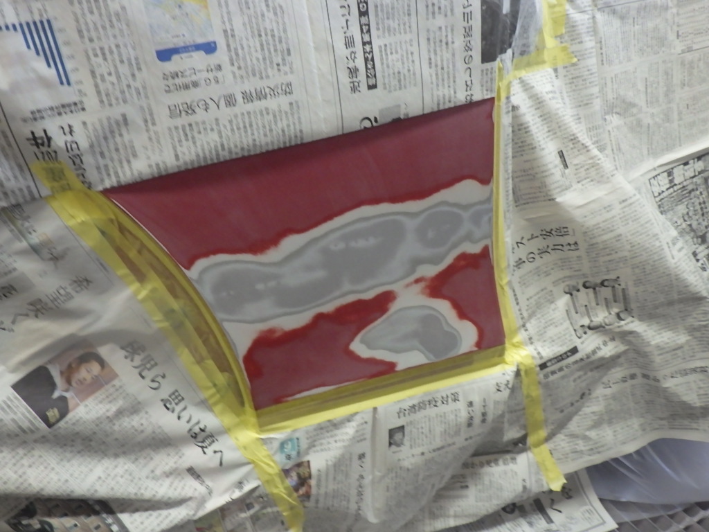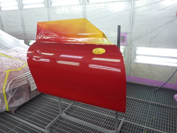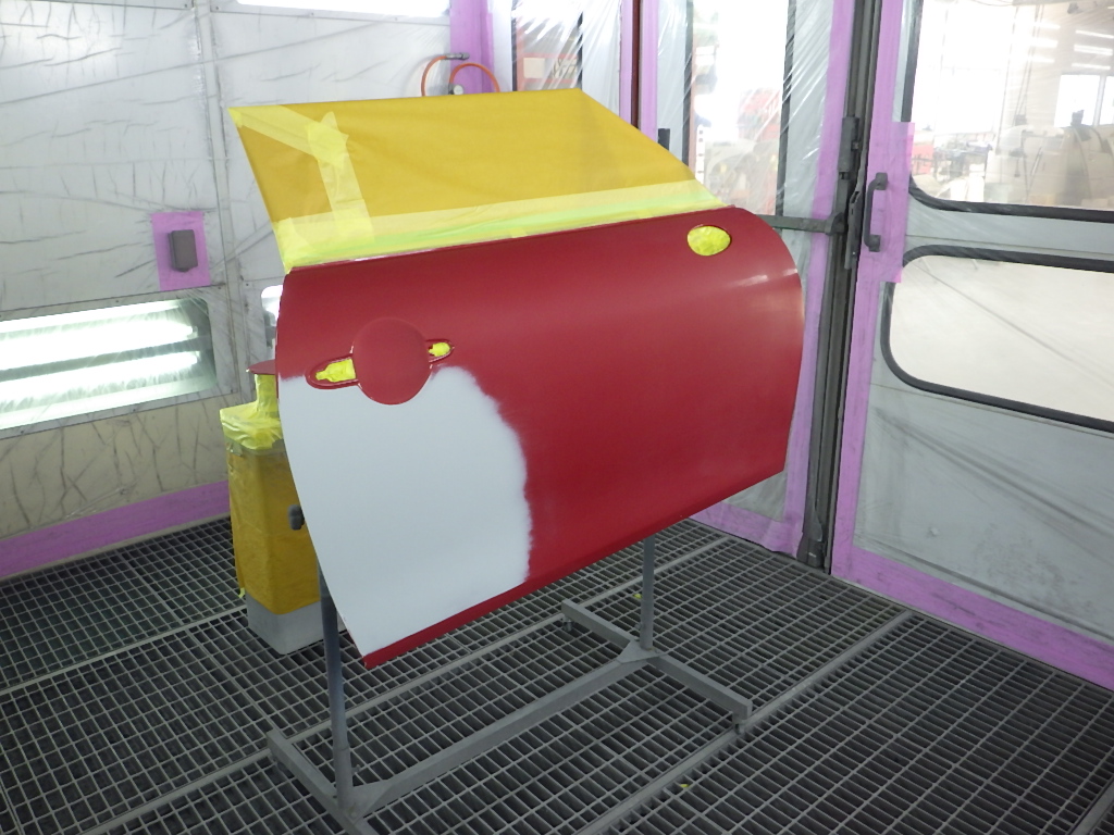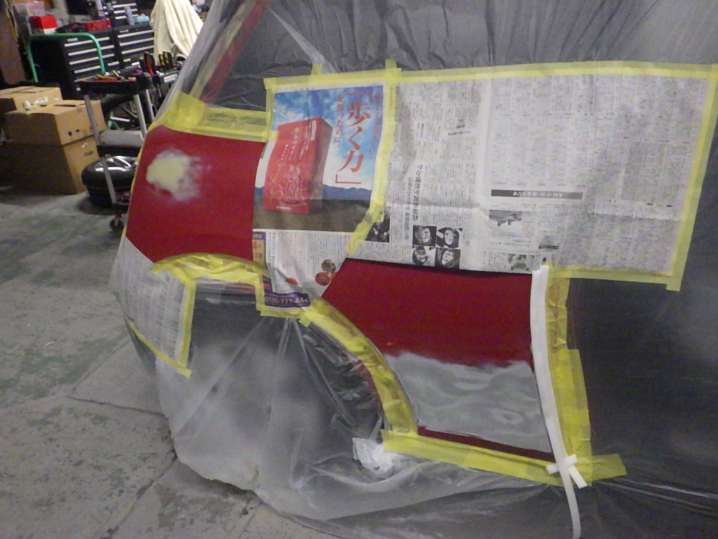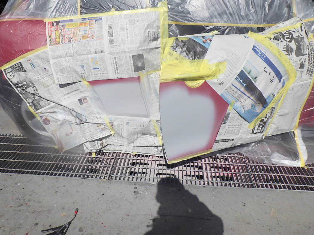 ベースコート(赤)、トップコート(クリヤー)の順に塗装作業を行いました。