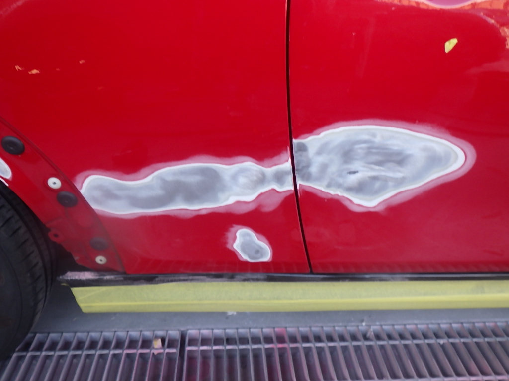 パテの密着性向上の為、プライマーの塗装作業を行いました。