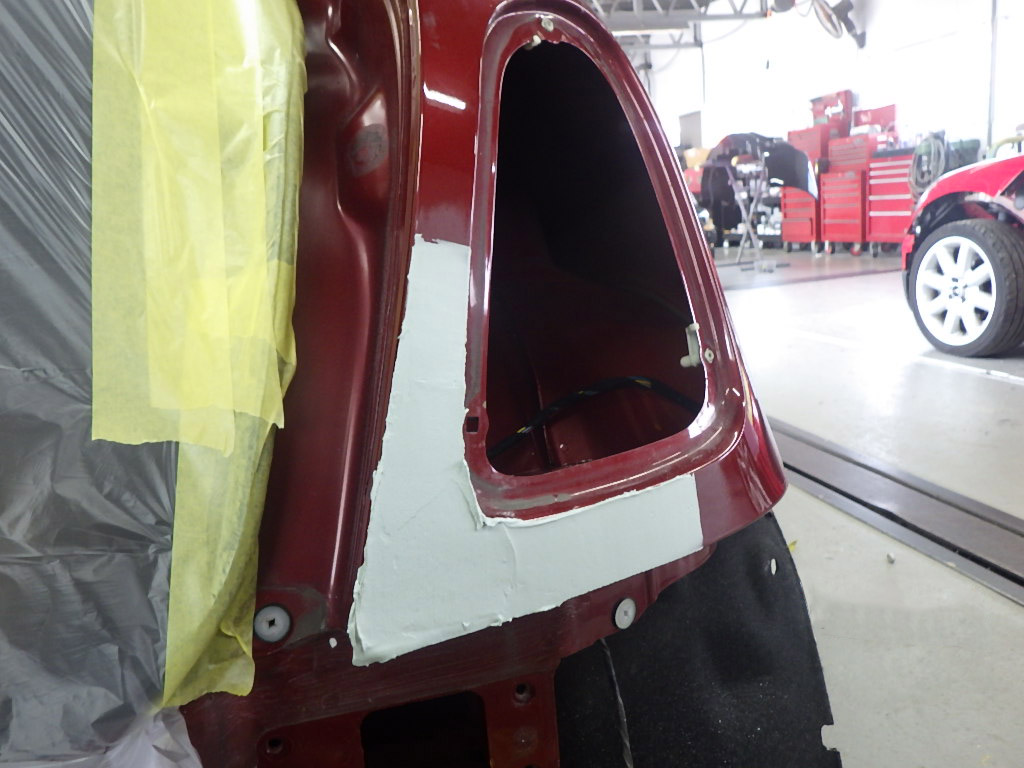 仮合わせ作業の後、足付け作業、脱脂作業を行い、パテ付け作業を行いました。