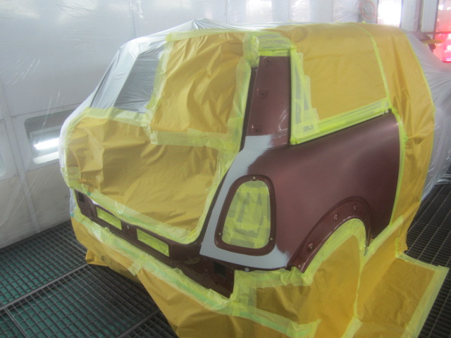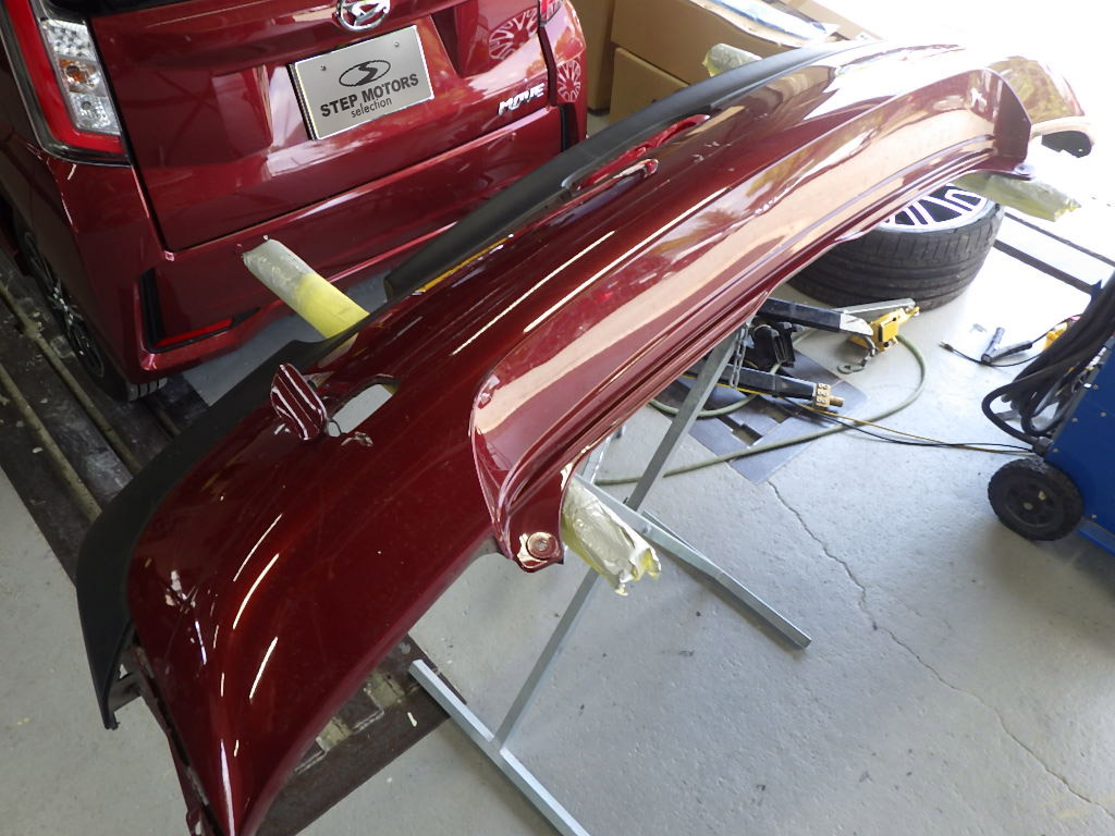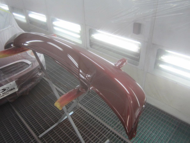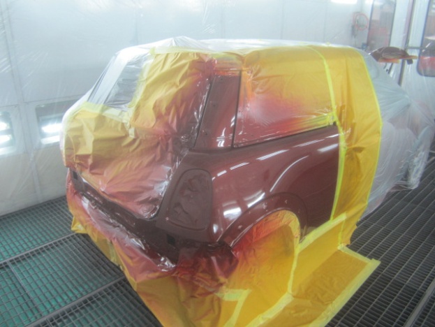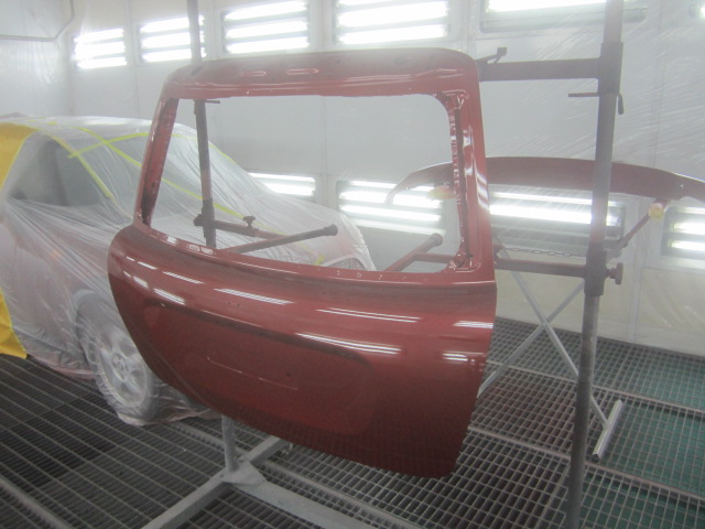 ベースコート(赤)、トップコート(クリヤー)の順に塗装作業を行いました。
