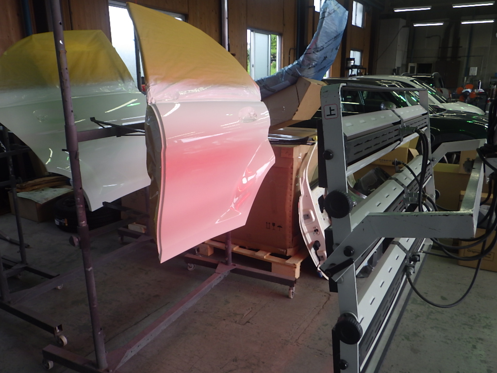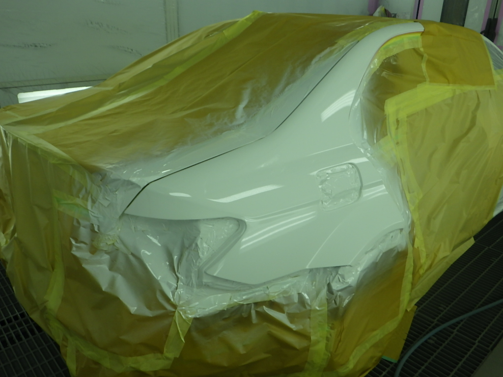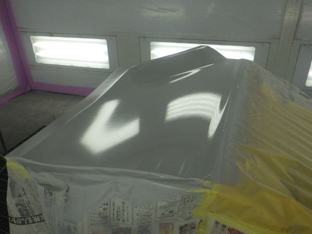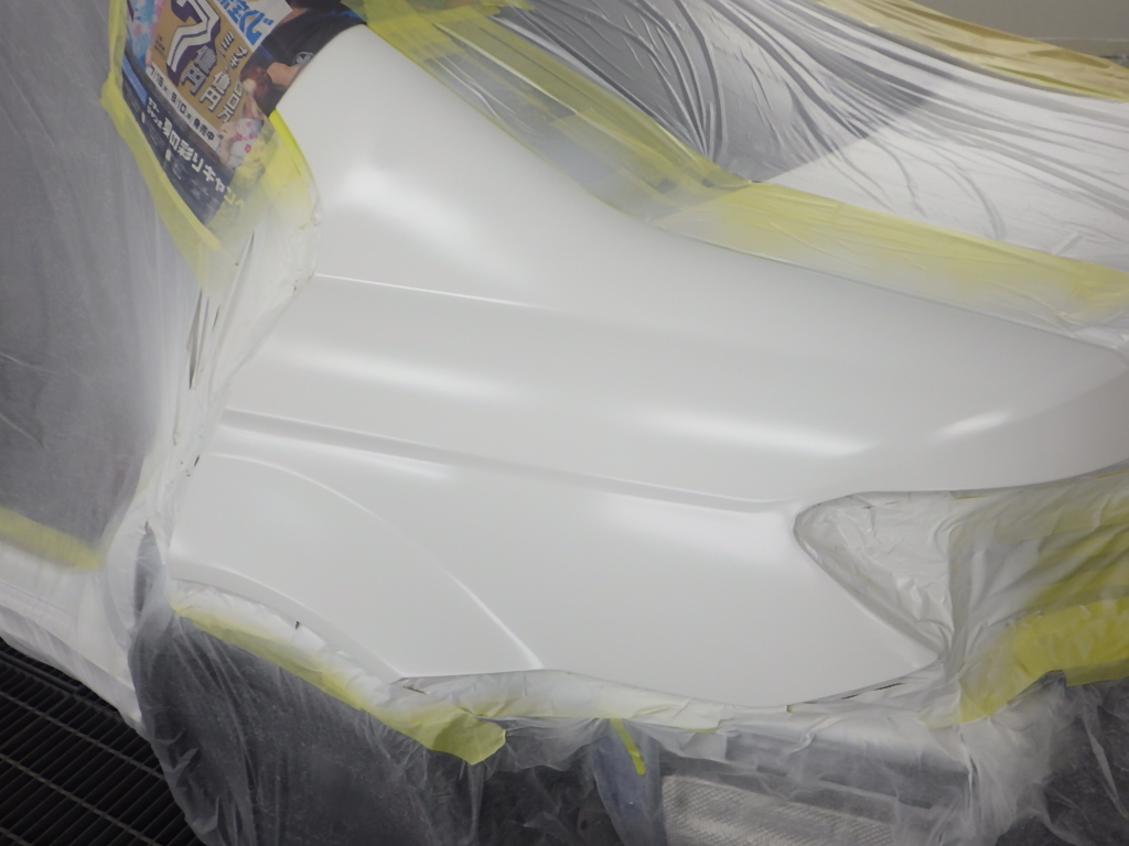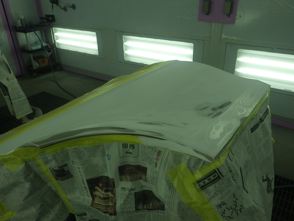 ベースコート(白)、トップコート(クリヤー)の順に塗装作業を行いました。