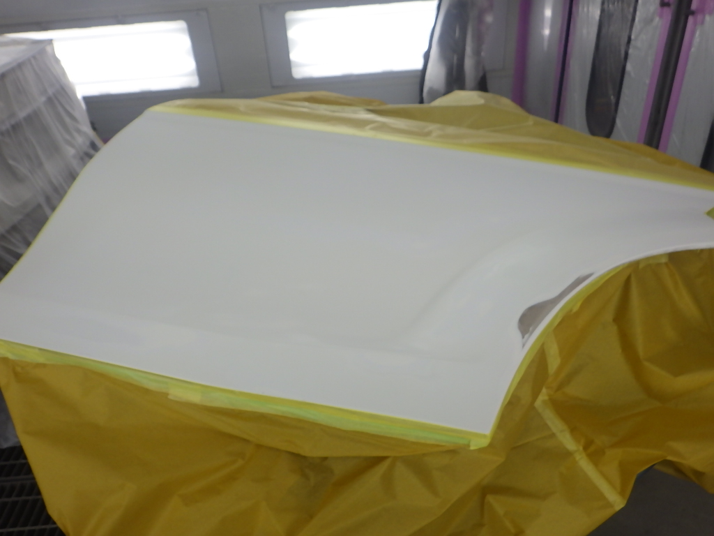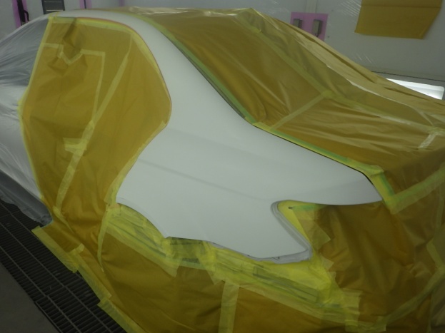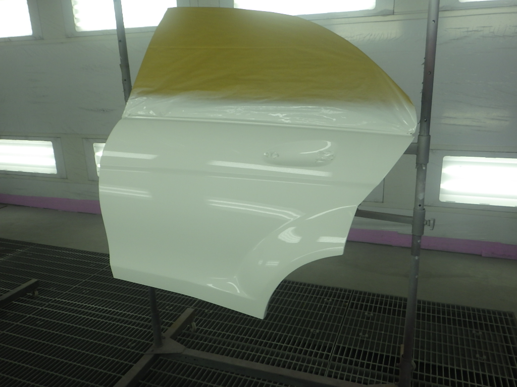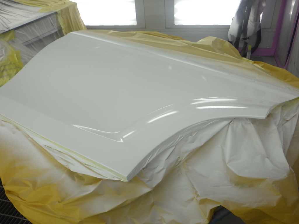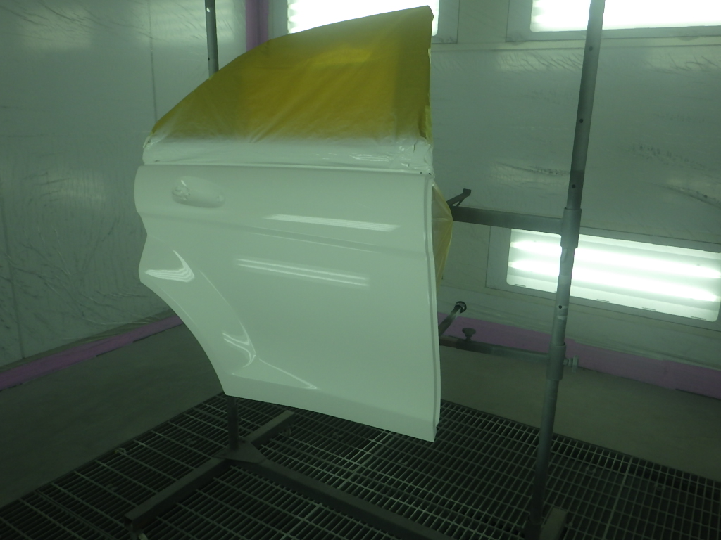 ベースコート(白)、トップコート(クリヤー)の順に塗装作業を行いました。