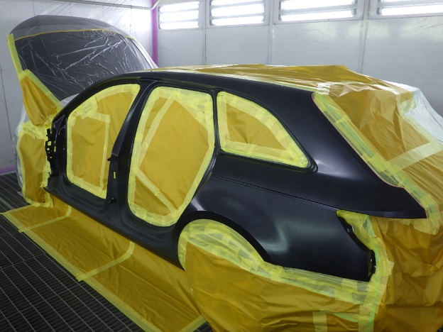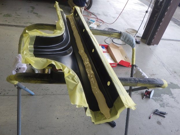 プライマー乾燥の後、パテ付け、サンディング作業、マスキング作業、脱脂作業、