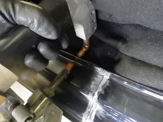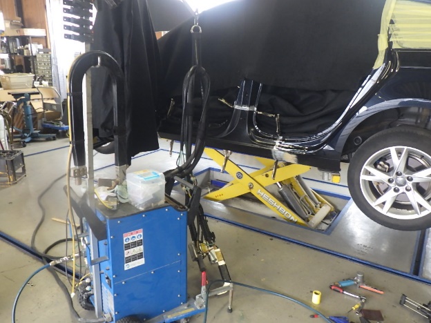 溶接作業の後、削り作業、マスキング作業、脱脂作業、エアブローを行い、