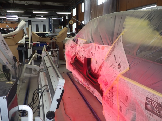 サフェーサーの塗装作業の後、遠赤外線を使用し、強制乾燥を行いました。