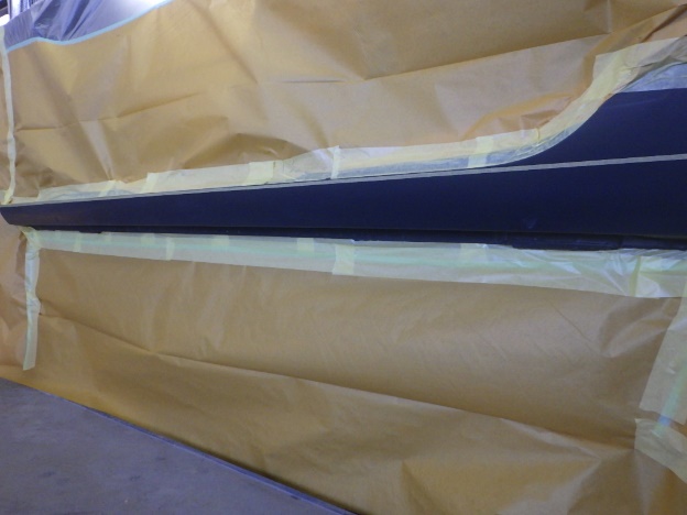ベースコート(紺)、トップコート(クリヤー)の順に塗装作業を行いました。