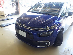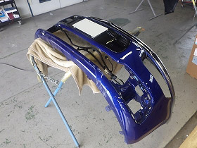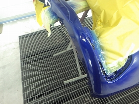 ベースコート(青)、トップコート(クリヤー)の順に塗装作業を行いました。